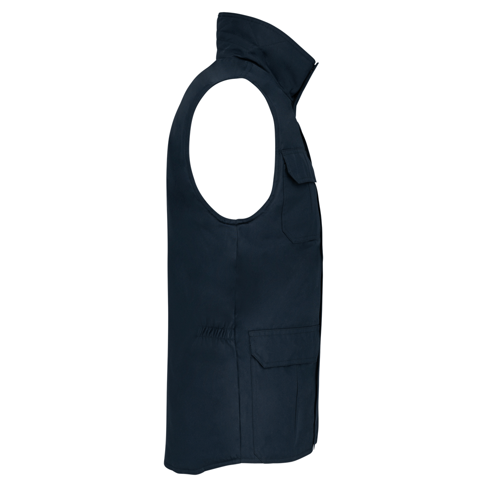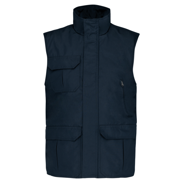 100 % Polyester. Außen: 100% Oxford Polyester mit PVC Beschichtung innenseitig. Steppfutter: 100% Polyester-Wattierung. Durchgehender verdeckter Reißverschluss. 4 Außentaschen (3 Taschen mit Klappe + 1 mit Reißverschluss). Verdecktes, elastisches Band. 2 Innentaschen (1 mit Reißverschluss und 1 fürs Handy). Reißverschluss für leichtes Veredeln.