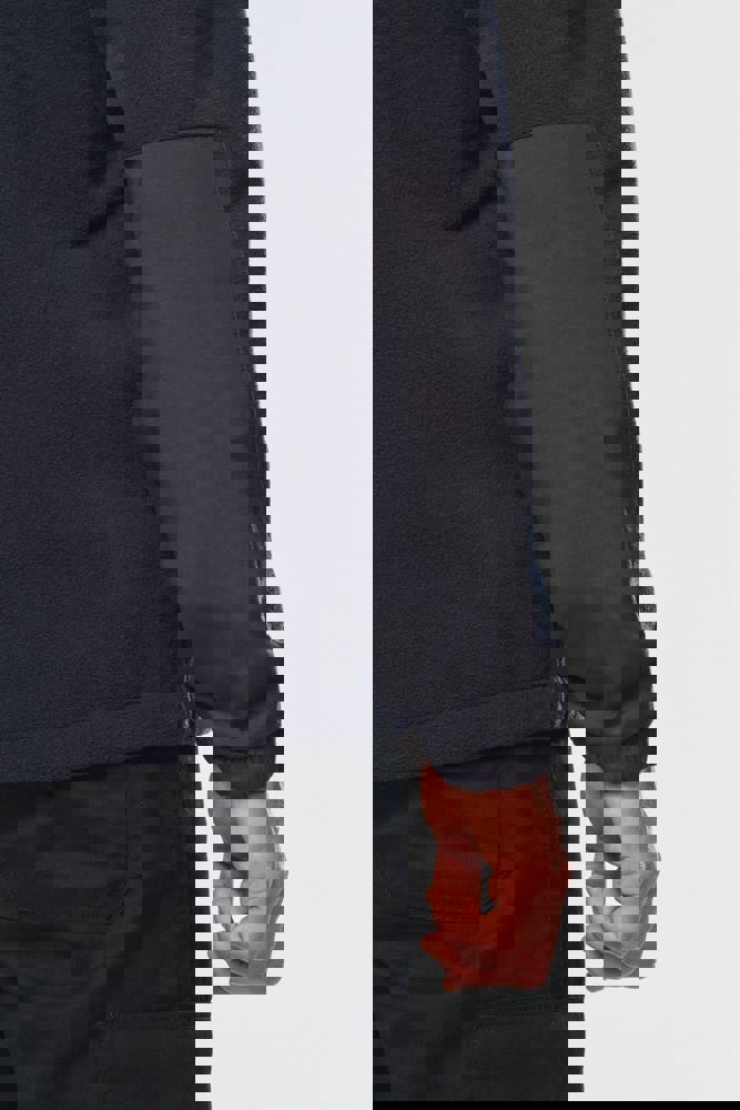 100% Polyester. Außenmaterial: 100 % Polyesterfleece 400 g/m². Verstärkungen 100 % Polyester-Taslan mit Acrylbeschichtung. Ärmel mit 210T Polyester-Innenfutter. 2-in-1-Fleecejacke. 2 Reißverschluss-Vordertaschen und 1 Reißverschluss-Brusttasche mit Klappe und Klettverschluss. Besätze Ton-in-Ton vorn, hinten und an den Unterarmen. Front und Rücken leicht veredelbar. Polyester gefütterte, abnehmbare Ärmel für mehr Komfort. Ärmelbündchen und Bund elastisch.