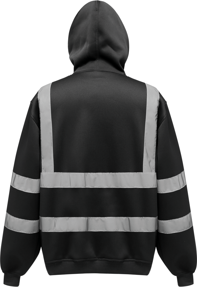100 % pillingfreies Polyester. 2 reflektierende Streifen (5 cm breit) um Rumpf und Arme. Je ein reflektierender Schulterriemen. Nackenband im Halsausschnitt. Angesetzte Kapuze (in der Verlängerung des Halsausschnitts) mit Kordelzug. Eingesetzte Ärmel. Kängurutasche vorne. Strickbündchen an Ärmeln und Saum. Doppelnähte an Hals, Ärmelbündchen und Saum. Norm EN ISO 20471 Kategorie 3 : Hi-Vis Yellow, Hi-Vis Orange, Hi-Vis yellow/Navy, Hi-Vis Orange/Navy.