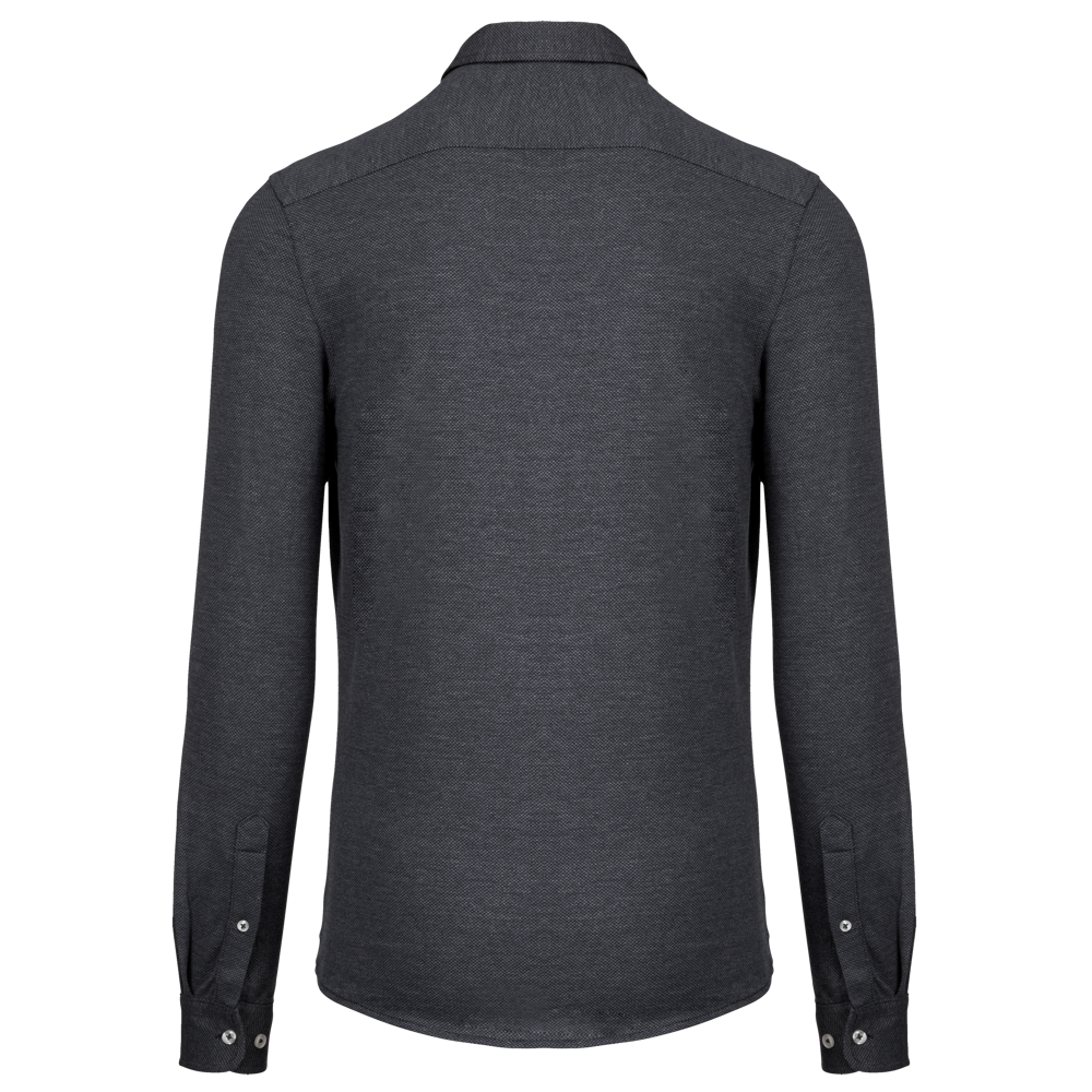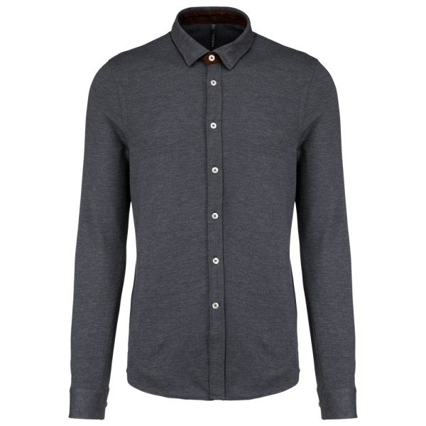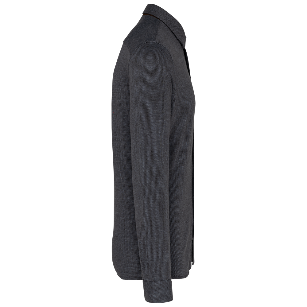 68 % Baumwolle / 32 % Polyester. Jacquardstrick. Kragensteg mit kontrastfarbenem Wildlederimitat abgesetzt. Moderner Look. Bequemes, weiches Material. Klassische Knopfleiste mit Knopf aus Perlmuttimitat. Verstellbare Manschetten mit Knöpfen aus Perlmuttimitat. Abgerundeter Saum.