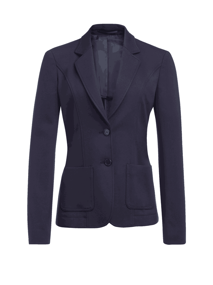 67 % Viskose/29 % Polyamid/4 % Elasthan. 2 aufgesetzte Taschen, abgesteppte Nähte, Ärmelbündchen mit Schlitz, einfarbiger Rücken.