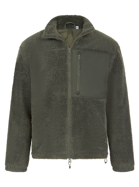 100 % recycelter Polyester. Trichterförmiger Kragen mit Fleece-Futter. Brusttasche mit Reißverschluss. Filz-Seitentaschen mit Druckknopf-Verschluss. Elastische Ärmelbündchen. Regular Schnitt. Elastischer Kordelzug unten an der Jacke.