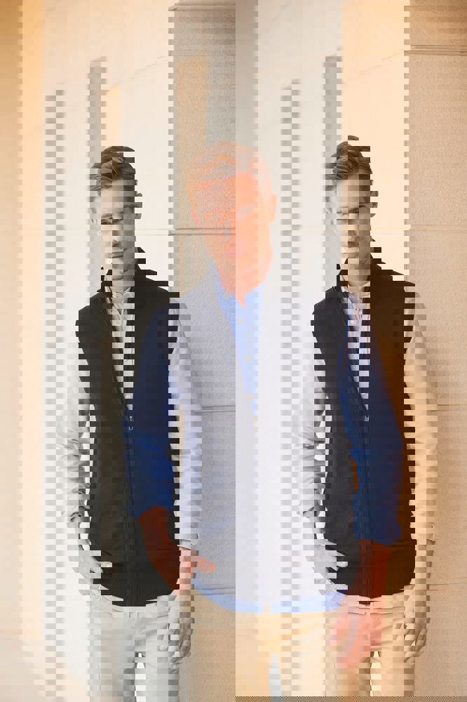 50 % Baumwolle / 50 % Acryl. Pullover ohne Ärmel mit Reißverschluss für Herren. Halbmodellierter... mehr