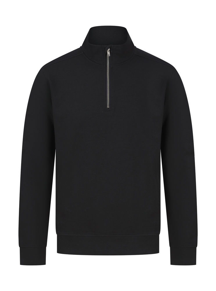 60 % regenerierte Baumwolle/40 % recycelter Polyester. Fleece mit gebürstetem Rücken. Unisex-Schnitt. Set-in-Ärmel. Reißverschlusskragen mit Nackenband. Kragen und Ärmelbündchen gerippt. 2 seitliche Reißverschlusstaschen.