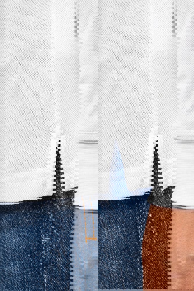 100% Bio-Baumwolle. Gekämmte Baumwolle. Piquéstrick. Gerader Schnitt. Enzymwäsche. Langarm Seitennähte. 1x1 Strickbündchen an Hals und Ärmeln. Knopfleiste mit zwei passenden Knöpfen. Passendes Nackenband aus dem Hauptmaterial auf der Innenseite des Kragens. Verstärkte Schultern. Seitliche Schlitze. Saum mit doppelten Nähten. Kein Markenetikett, nur eine abtrennbare Größenangabe zur einfachen Dekoration.