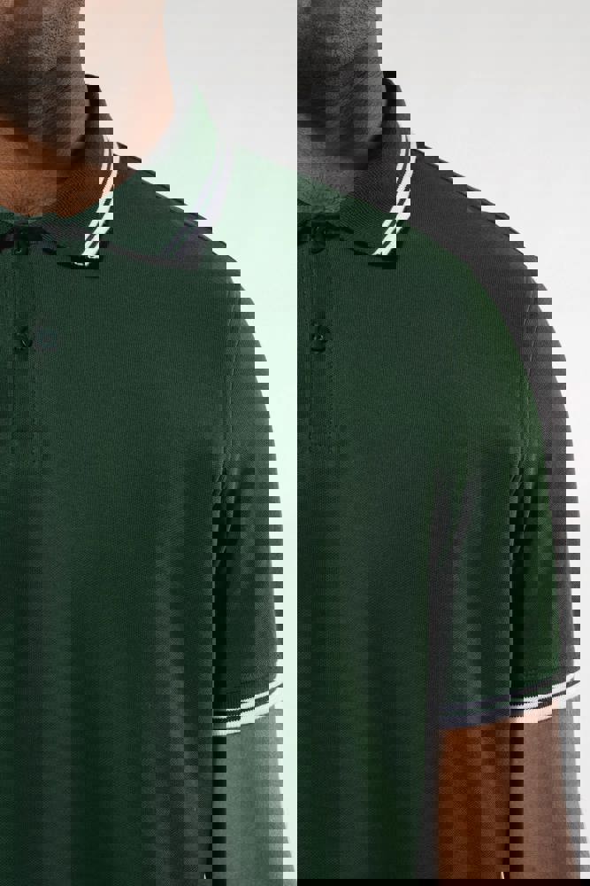 100 % Baumwolle. Bei den melierten Farben: 92 % Baumwolle/8% Viskose. Gekämmte Baumwolle. Pikeetrikot. Gerader Schnitt. Knopfleiste mit 2 farblich abgestimmten Knöpfen. Nackenband aus Hauptstoff am Halsausschnitt. Seitenschlitze mit Abschlussband aus Hauptstoff. Strickbündchen mit farblich abgesetzten Paspeln am Kragen und an den Ärmelbündchen. Doppelnaht am Saum.