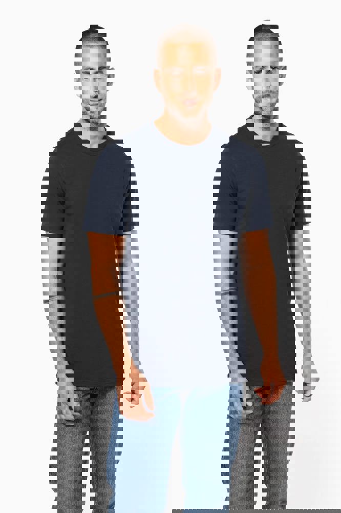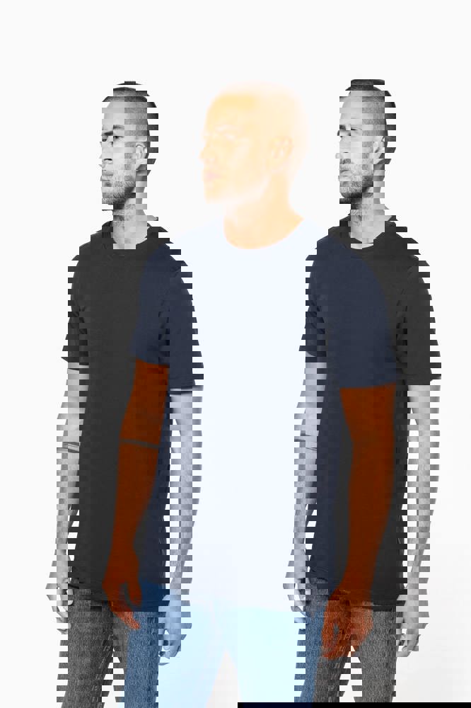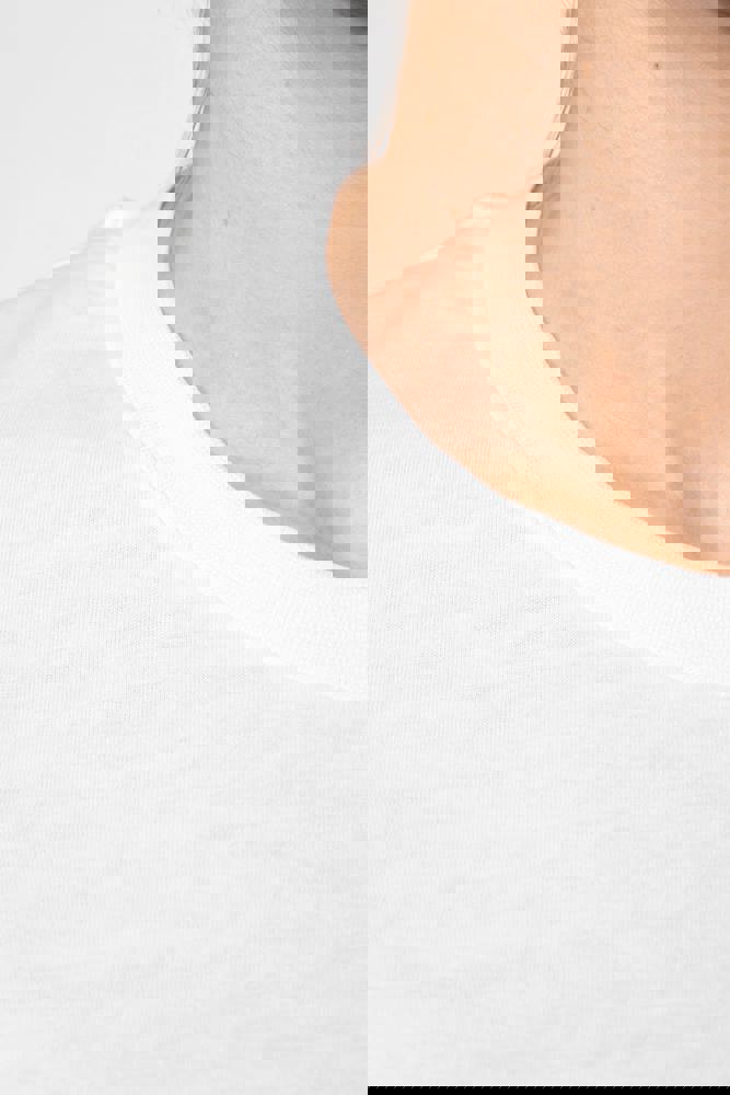 100 % gekämmte Baumwolle. Jerseystoff. Gerader Schnitt. Zugeschnitten genäht. Rundhalsausschnitt mit Ton-in-Ton-Nackenband. Verstärkte Schulternaht mit Silikonband. Abschluss an Ärmelbündchen und unterem Saum mit doppelter Ziernaht. Kein Markenetikett, nur Tear Away-Label für Größenangabe, zur einfacheren Veredelung. Hergestellt in Portugal.