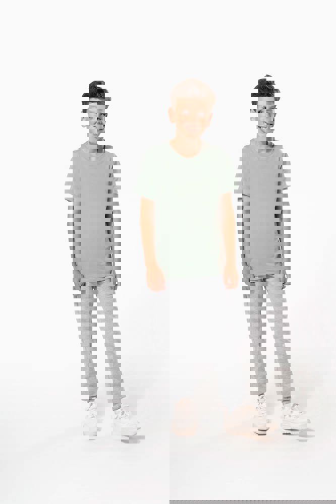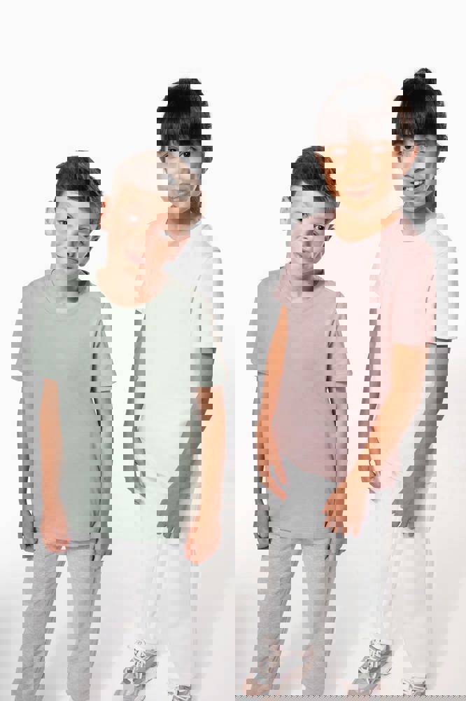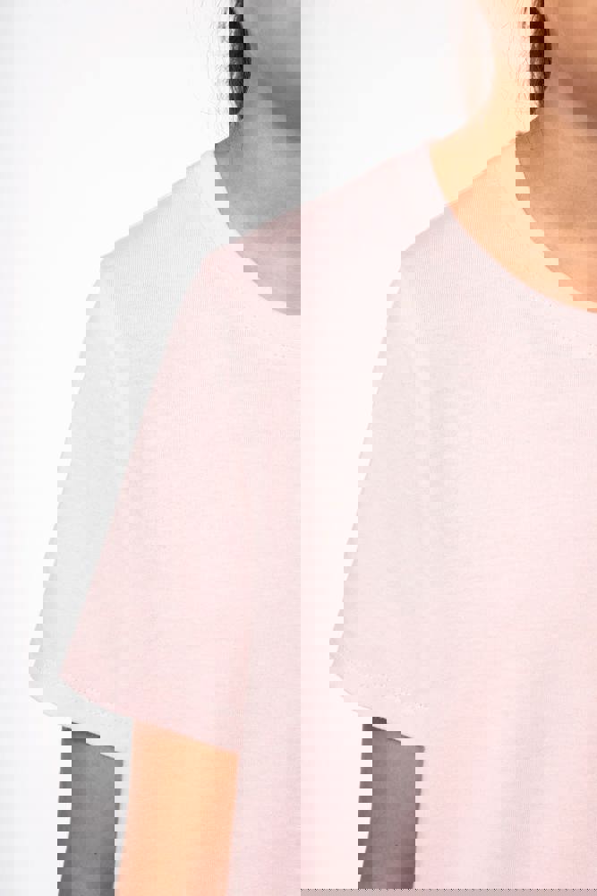 Uni : 100 % Baumwolle. Farbton Ash Heather 98 % Baumwolle / 2 % Viskose und Oxford Grey : 90 % Baumwolle / 10 % Viskose. Alle Farben werden aus biologischer Baumwolle in Umstellung hergestellt. Gekämmte Baumwolle. Zugeschnitten genäht. Rundhalsausschnitt mit Strickbündchen und Elasthan. Farblich abgestimmtes Nackenband. Doppelnähte an Ärmelbündchen und unterem Saum.