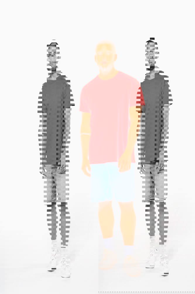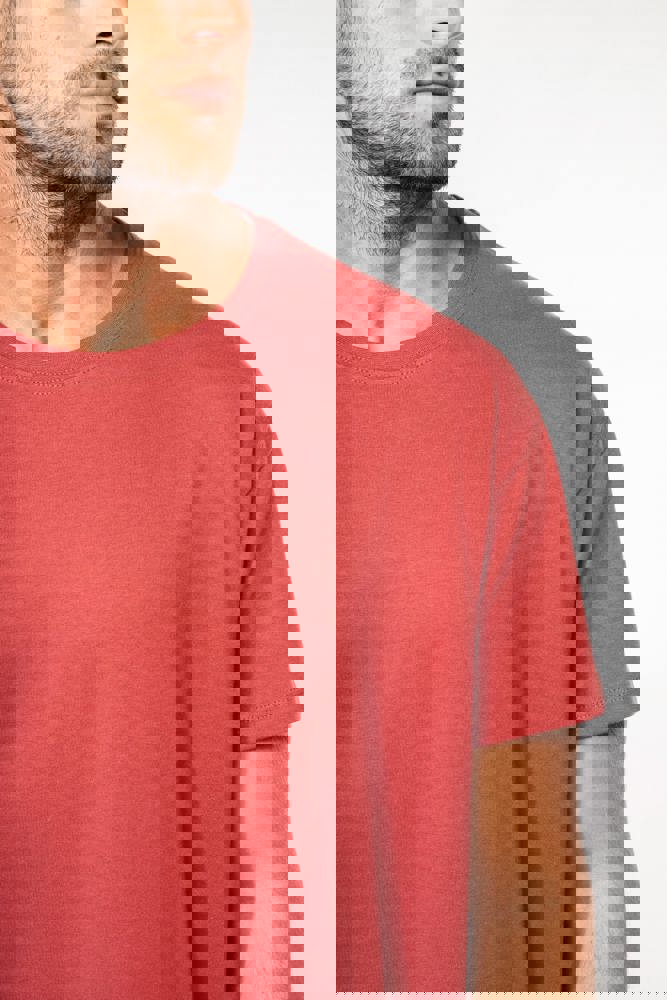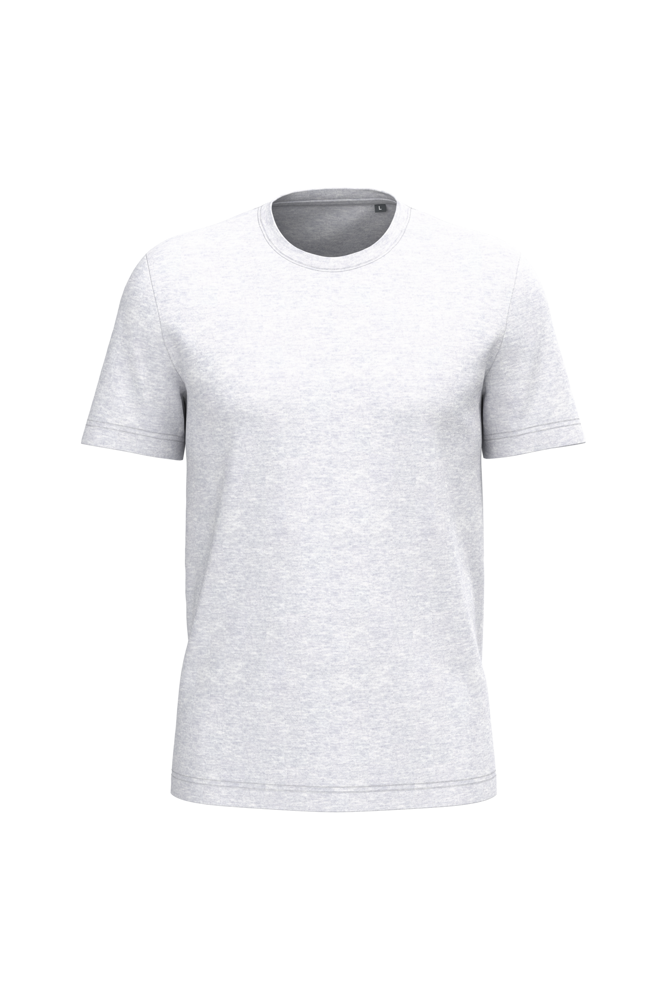 Uni : 100 % Baumwolle. Farbton Oxford Grey : 90 % Baumwolle / 10 % Viskose. Farbton Wine Heather, Green Marble Heather und Cloudy Blue Heather : 80 % Baumwolle / 20 % Polyester. Alle Farben werden aus biologischer Baumwolle hergestellt. Gekämmte Baumwolle. Schlauchware. Gerader Schnitt. Rundhalsausschnitt mit Strickbündchen und Doppelziernähten auf beiden Seiten der Naht. Farblich abgestimmtes Nackenband. Doppelnähte an Ärmelbündchen und unterem Saum. Kein Markenetikett am Kragen, nur Größenkennzeichnung, für eine leichtere Veredelung.
