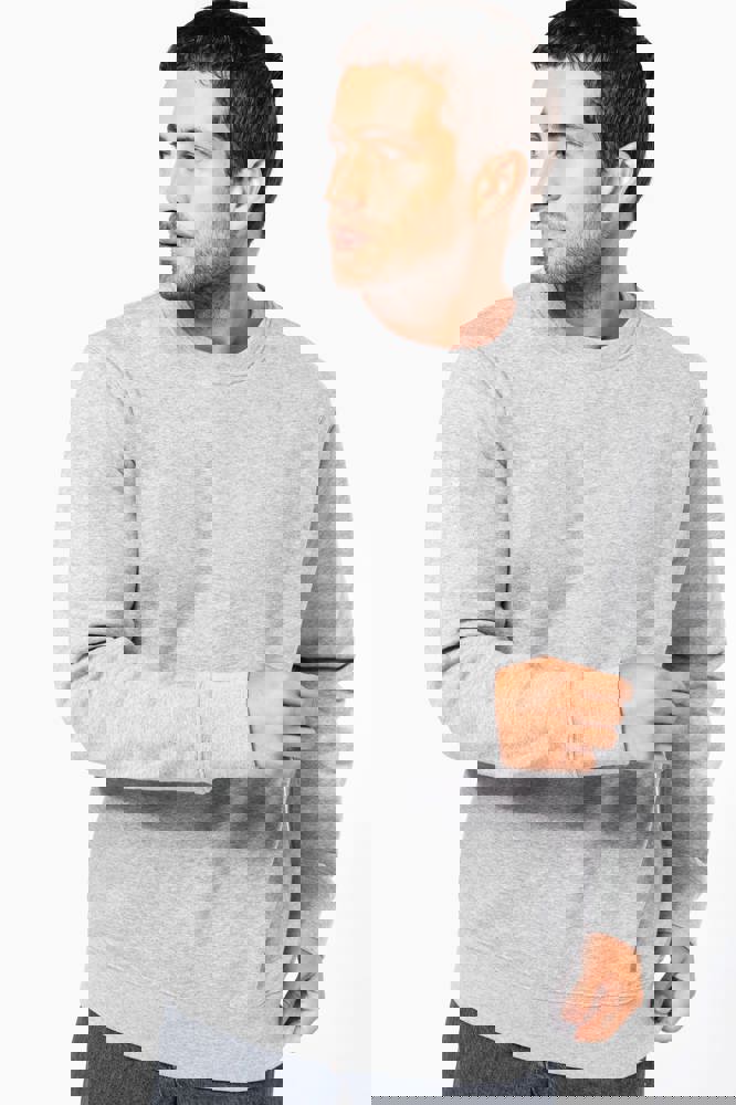 80 % Baumwolle / 20 % Polyester. Gebürstetes Molton 3 Nähten LSF (Low Shrinkage Fleece) mit Anti-Pilling-Behandlung. Hergestellt in Portugal. Gerader Schnitt. Rundhalsausschnitt. Zugeschnitten genäht. 1x1 schlauchförmiges Strickbündchen für eine optimale Verarbeitung an Kragen, Ärmelabschlüssen und am unteren Saum. Halbmond-Finish auf der Krageninnenseite. Doppelnähte an Ärmelbündchen und Saum. Kein Markenetikett am Halsausschnitt, nur Größenangabe, zur einfacheren Veredelung.