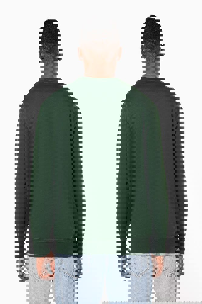 50 % Ringspun-Baumwolle / 50 % recycelter Polyester post-consumer. Gebürstetes Molton. Gerader Schnitt. Zugeschnitten genäht. 2x1 schlauchförmiges Strickbündchen für eine optimale Verarbeitung an Kragen, Ärmelabschlüssen und am unteren Saum. Farblich abgestimmtes Jersey-Nackenband auf Krageninnenseite. Kein Markenetikett am Halsausschnitt, nur Größenangabe, zur einfacheren Veredelung.