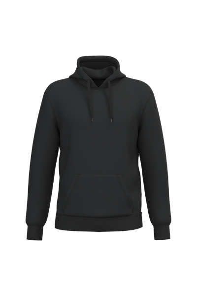 50 % Ringspun-Baumwolle / 50 % recycelter Polyester post-consumer. Gebürstetes Molton. Gerader Schnitt. Zugeschnitten genäht. 2x1 schlauchförmiges Strickbündchen für eine optimale Verarbeitung an Kragen, Ärmelabschlüssen und am unteren Saum. Kängurutasche. Gefütterte Kapuze aus Baumwollpolyester-Jersey mit flachem Kordelzug. Farblich abgestimmtes Jersey-Nackenband auf Krageninnenseite. Kein Markenetikett am Halsausschnitt, nur Größenangabe, zur einfacheren Veredelung.