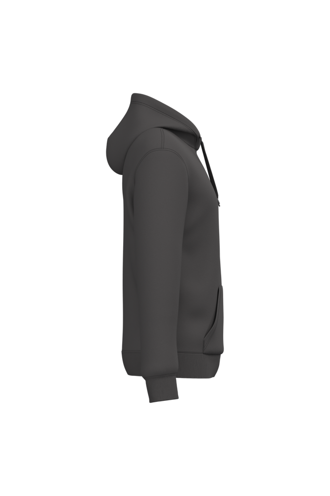 50 % Ringspun-Baumwolle / 50 % recycelter Polyester post-consumer. Gebürstetes Molton. Gerader Schnitt. Zugeschnitten genäht. 2x1 schlauchförmiges Strickbündchen für eine optimale Verarbeitung an Kragen, Ärmelabschlüssen und am unteren Saum. Kängurutasche. Gefütterte Kapuze aus Baumwollpolyester-Jersey mit flachem Kordelzug. Farblich abgestimmtes Jersey-Nackenband auf Krageninnenseite. Kein Markenetikett am Halsausschnitt, nur Größenangabe, zur einfacheren Veredelung.