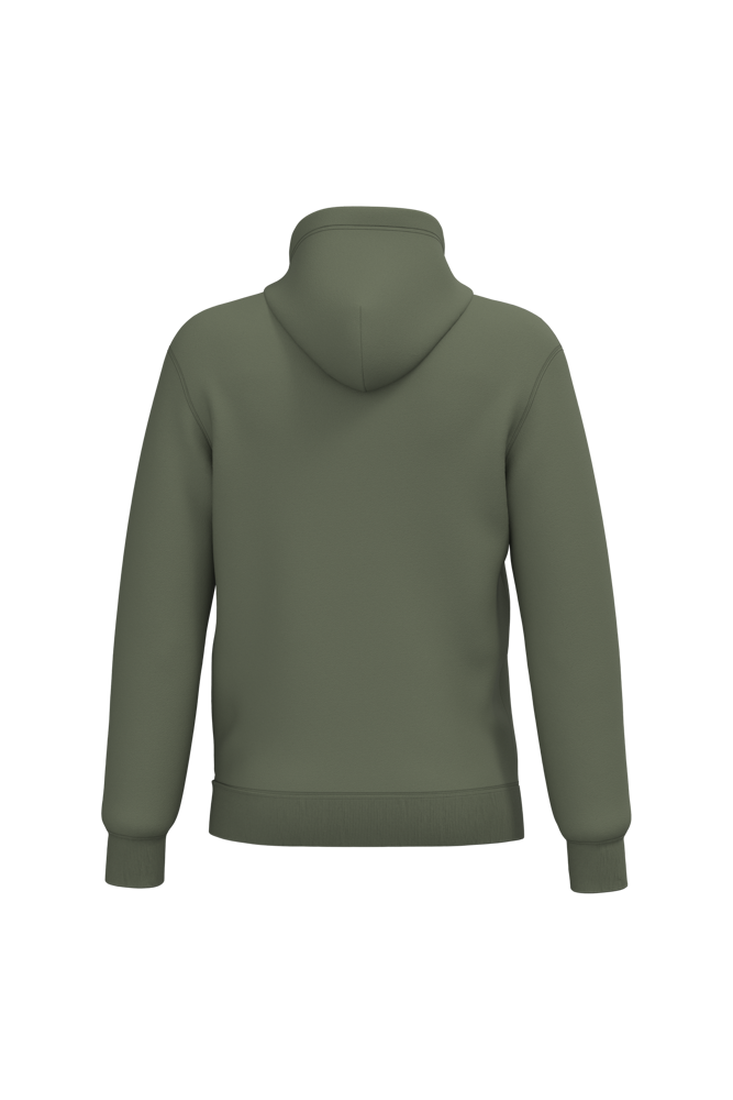 50 % Ringspun-Baumwolle / 50 % recycelter Polyester post-consumer. Gebürstetes Molton. Gerader Schnitt. Zugeschnitten genäht. 2x1 schlauchförmiges Strickbündchen für eine optimale Verarbeitung an Kragen, Ärmelabschlüssen und am unteren Saum. Kängurutasche. Gefütterte Kapuze aus Baumwollpolyester-Jersey mit flachem Kordelzug. Farblich abgestimmtes Jersey-Nackenband auf Krageninnenseite. Kein Markenetikett am Halsausschnitt, nur Größenangabe, zur einfacheren Veredelung.