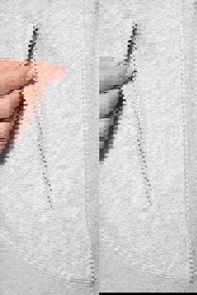 80 % Baumwolle / 20 % Polyester. Außenseiteaus 100% Baumwolle. LSF-Behandlung (Low Shrinkage Fleece: vorgeschrumpftes Molton). Gebürstetes Fleece mit drei Fäden aus gekämmter Baumwolle. Gerader Schnitt. Gerade geschnittene Ärmel. Hochgeschlossener Kragen. Ton-auf-Ton Kunststoff-Reißverschluss. 2 Paspeltaschen mit Reißverschluss an den Seiten. Halbmondförmiger Halsausschnitt auf der Rückseite für eine einfache Markenveredelung auf der Innenseite. 1x1-Strickbündchen an Ärmeln und Saum. Markenetikett zum Abreißen.