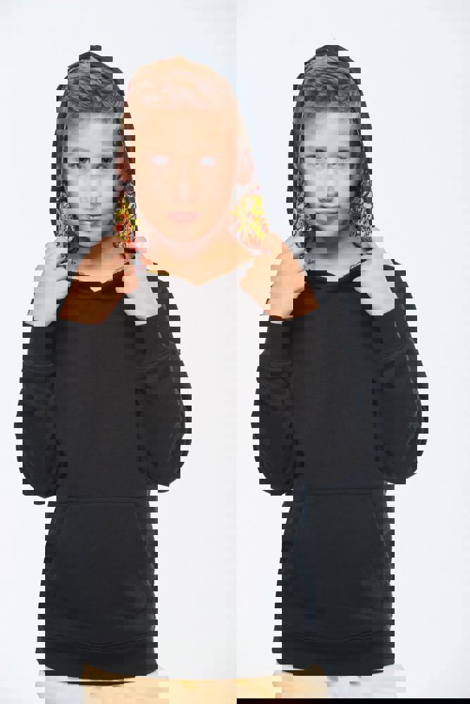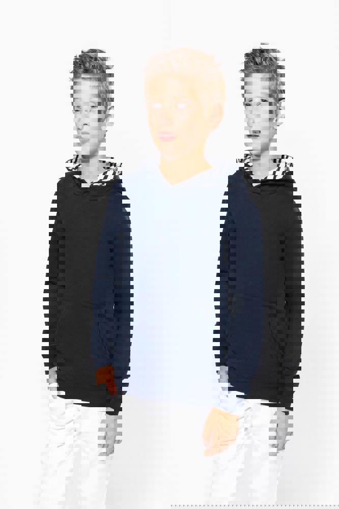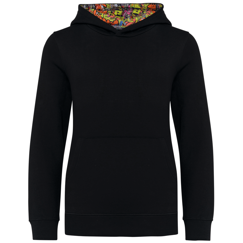K4014 - Kapuzensweatshirt mit kontrastfarbener Kapuze und Motiven für Kinder