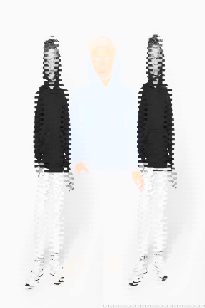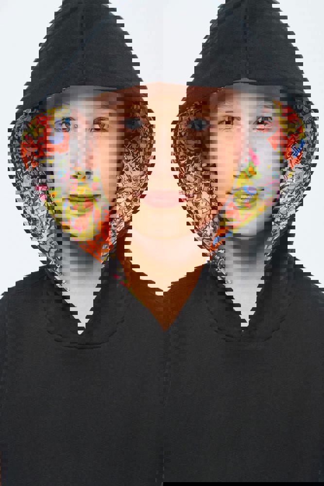 80 % Baumwolle / 20 % Polyester. Gekämmte Baumwolle. Gebürsteter Molton mit 3 Fäden. Gerader Schnitt. Gerade geschnittene Ärmel. Kängurutaschen. Halbmondförmiger Halsausschnitt für eine einfache Markenveredelung auf der Innenseite. 1 x 1-Strickbündchen an Ärmelenden und Saum. Gefütterte Kapuze mit spezifischem Stoff aus bedrucktem Baumwolljersey. Markenetikett zum Abreißen.