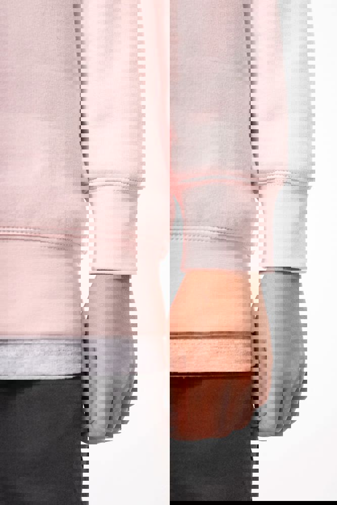 85 % Baumwolle / 15 % Polyester. Aus 85 % biologischer Baumwolle und 15 % recyceltem Polyester post-consumer. Außenseiteaus 100% Baumwolle. Gebürstetes Fleece mit 3 Nähten und LSF-Behandlung (Low Shrinkage Fleece). Gekämmte Baumwolle. Enzymwäsche veredelt. Gerader Schnitt. 1X1 schlauchförmige Strickbündchen für eine optimale Verarbeitung an Kragen, Ärmelabschlüssen und am unteren Saum. Ton-auf-Ton Jersey-Nackenband und Halbmond-Finish auf der Krageninnenseite. Doppelnähte an Kragen, Ärmelbündchen und Saum. Doppelnähte an Ärmelbündchen, Saum und Kraten. Kein Markenetikett am Kragen, nur Größenkennzeichnung, für eine leichtere Veredelung.