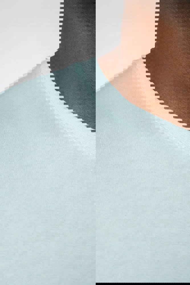 100 % Baumwolle (außer Farbe Oxford Grey: 90 % Baumwolle und 10 % Viskose). Alle Farben werden aus Baumwolle hergestellt, von Farmen, die auf Bio-Baumwolle umstellen. Gerader Schnitt. Jerseytrikot. Gekämmte Baumwolle. Rundhalsausschnitt mit 1x1 Strickbündchen (Ton-in-Ton) mit Absteppnaht. Ton-in-Ton-Nackenband aus Hauptmaterial. Doppelte Ziernaht an Ärmellöchern und unterem Saum. Kein Markenetikett am Halsausschnitt, nur Größenangabe, zur einfacheren Veredelung.