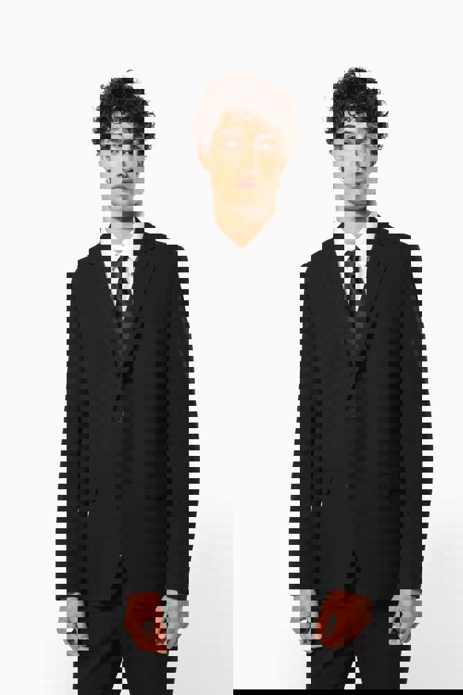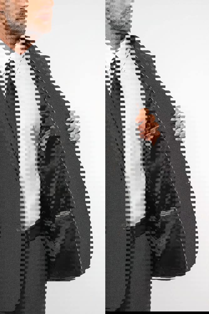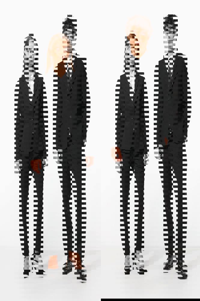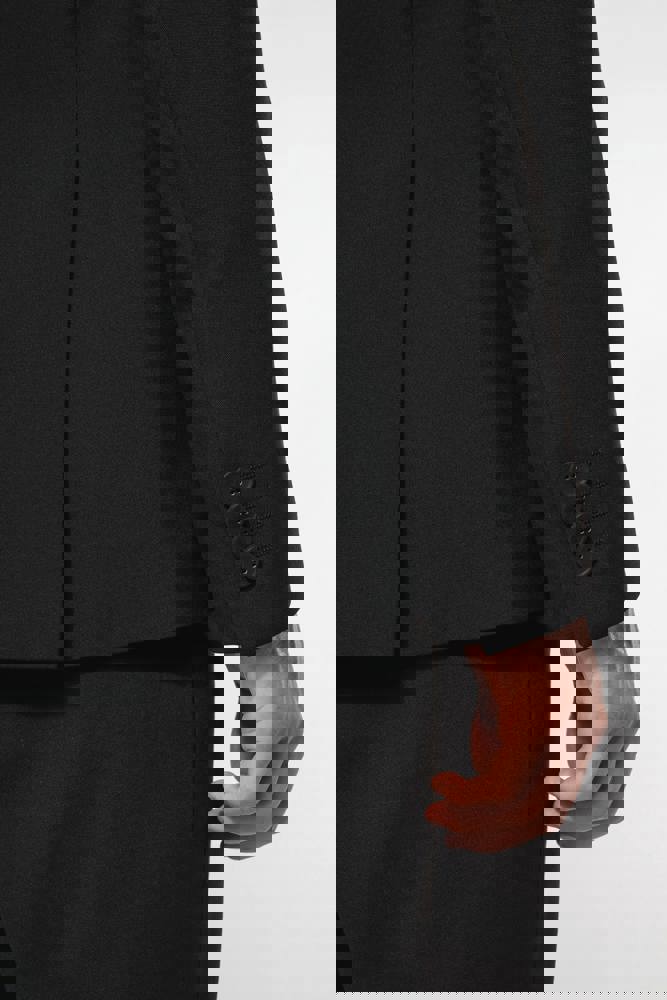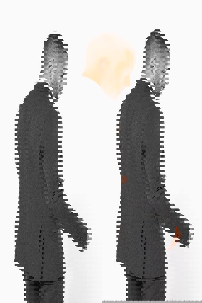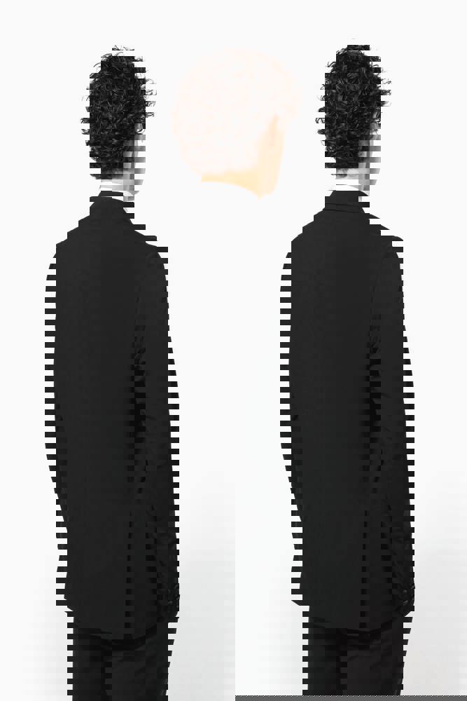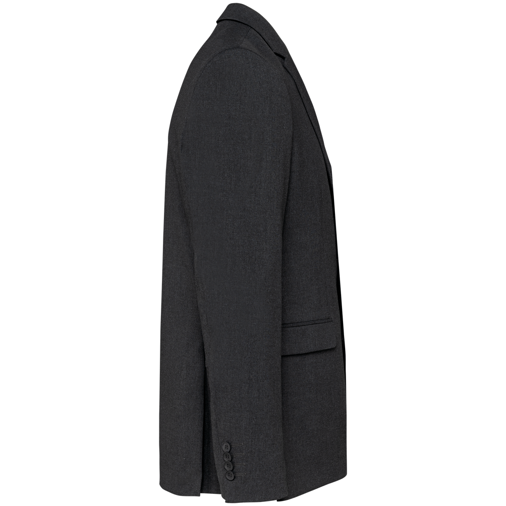 64 % Polyester / 34 % Viskose / 2 % Elasthan. Futter:100 % Polyester-Taft. Jacke mit 2 Knöpfen. 2 Paspeltaschen mit Klappe vorne.1 Brusttasche. 2 Innentaschen mit Knopf und 1 Handytasche. Ärmelbündchen mit 4 Knöpfen. 2 Schlitze am Rücken. 1 unsichtbarer Reißverschluss an der linken Seite zur Veredelung.