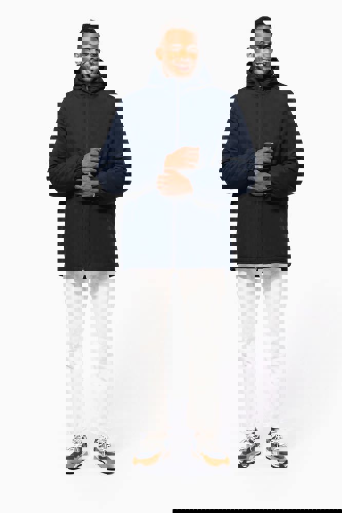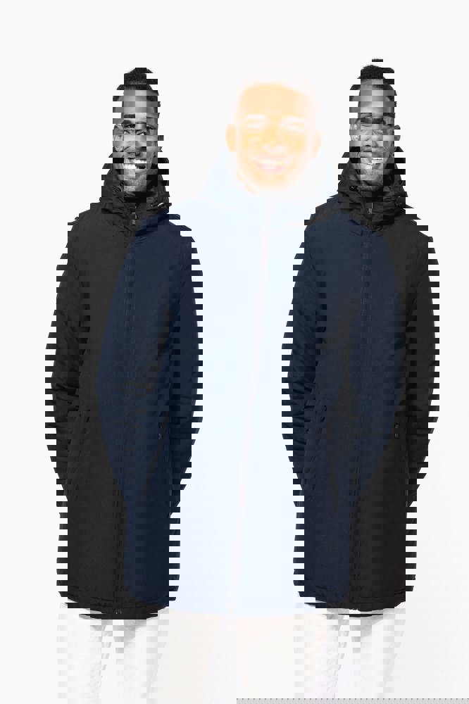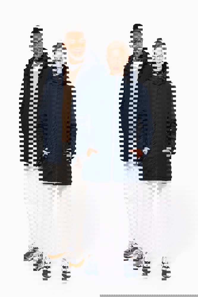 100 % Polyester. Dieser Parka besteht aus 100 % recyceltem Polyester post-consumer. Wasserabweisendes Gewebe. Soft-Touch-Finish für ein weicheres Tragegefühl. Polyester-Taft-Futter 210T schwarz. Gestepptes Innenmaterial: 100 % Polyester. Bequemer Schnitt. Nylon-Reißverschluss und Metall-Reißverschlussanhänger. Mit Polyester gefütterte Kapuze mit drei Panels mit Zugkordel und Stoppern. 2 Reißverschlusstaschen auf der Vorderseite. 1 Innentasche mit Klettverschluss. Elastische Ärmelbündchen. Verlängerter Rücken für mehr Komfort. Stoffeinsatz auf der Krageninnenseite zur Veredelung. Verdeckter Reißverschluss an der Brusttasche und am Saum zur Veredelung. Kein Markenetikett für eine problemlose Veredelung.