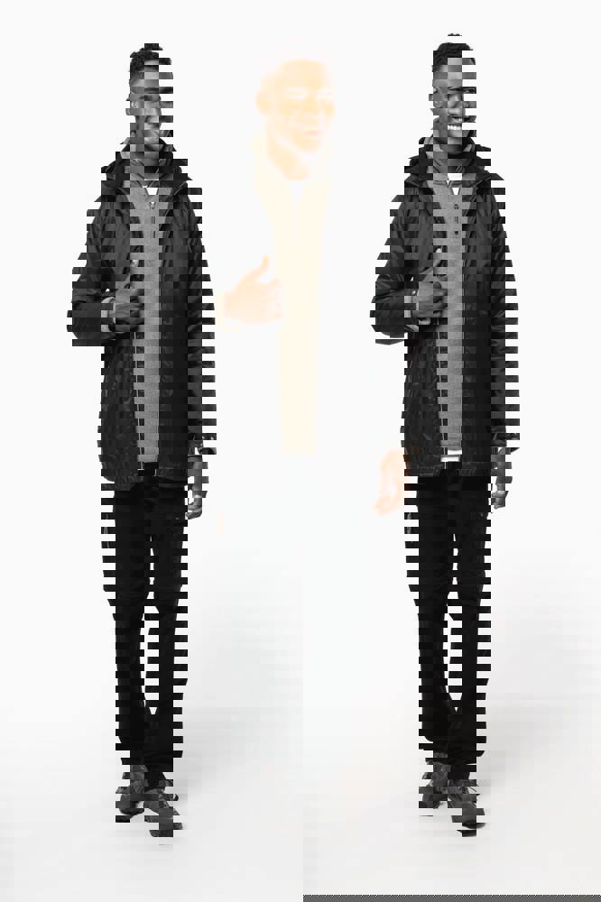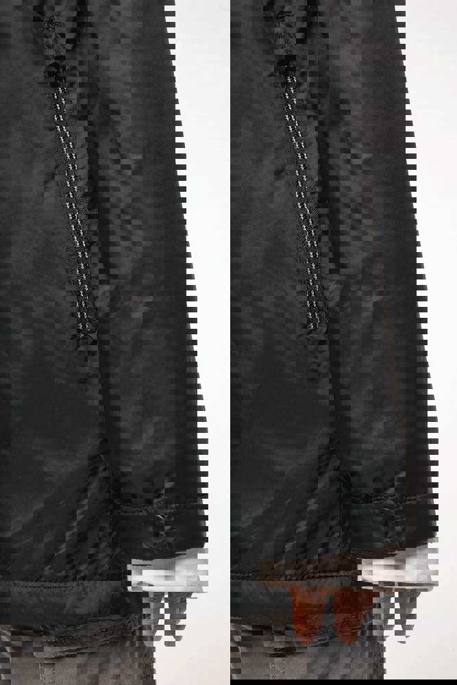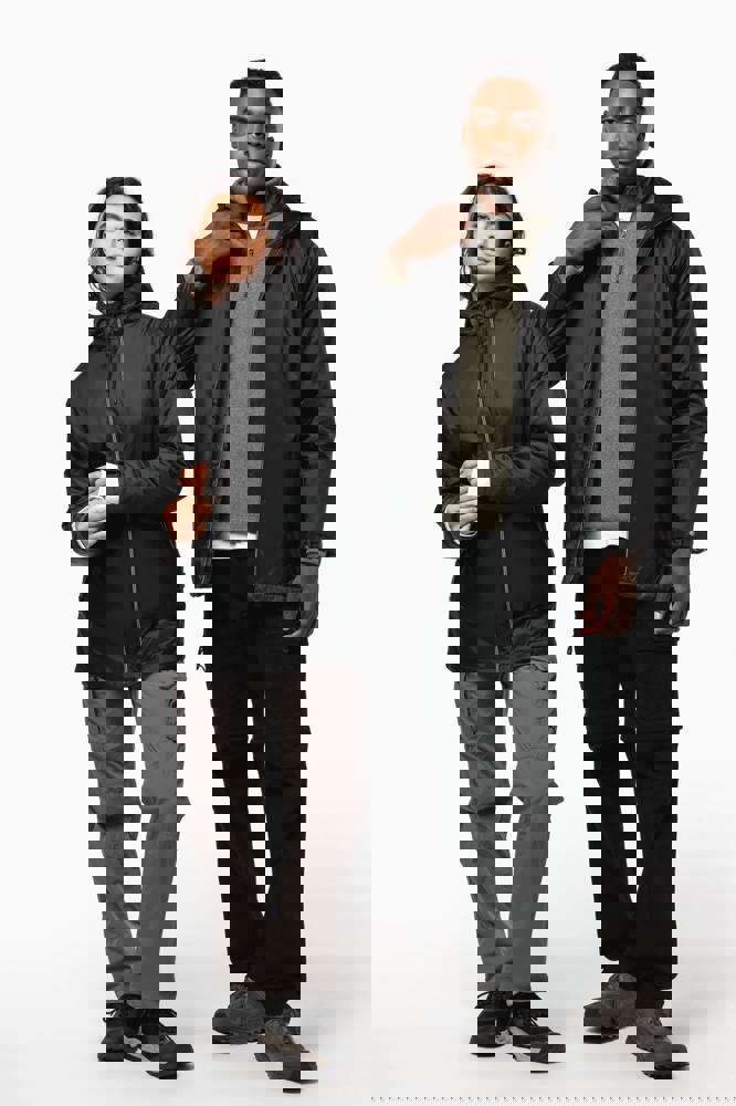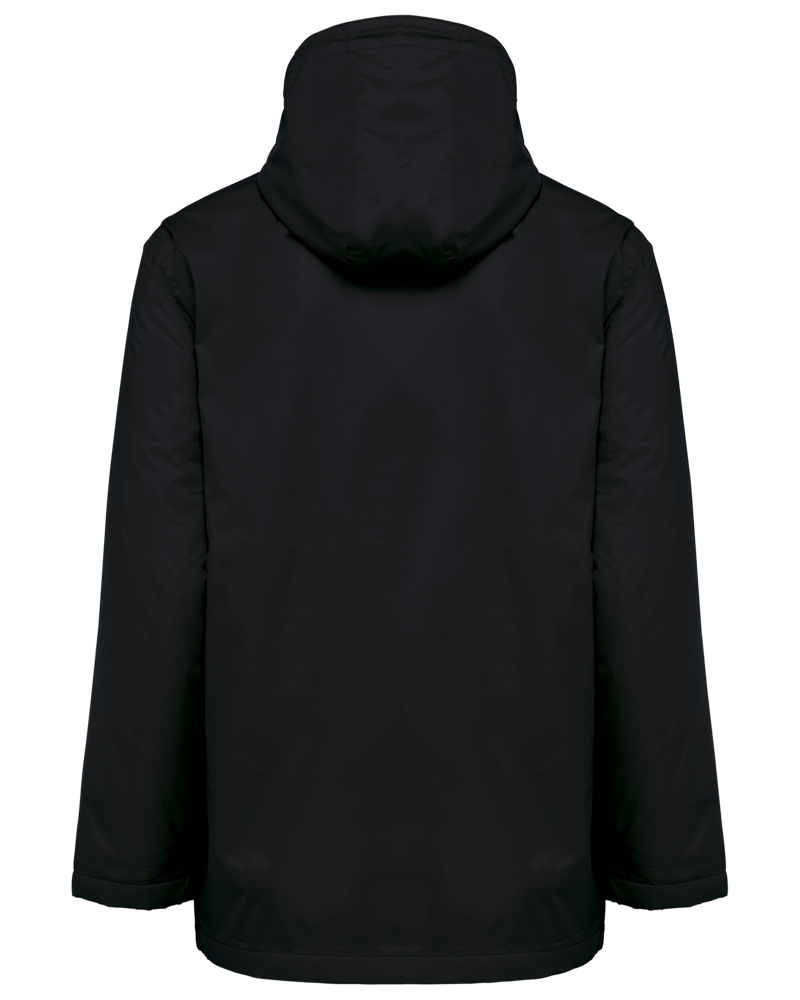 100 % Polyamid 210T mit Acrylbeschichtung. Futter aus 100 % Polyester-Mikrofleece. Gerader Schnitt. Futter an Rumpf, Kragen und Kapuze aus farblich abgestimmtem Mikrofleece. Wattierte Ärmel und Polyester-Futter. Schwarzer Reißverschluss mit silberfarbener Nylonkette. 2 Reißverschlusstaschen auf der Vorderseite. 1 Innentasche mit Klettverschluss. 3-Teilige Kapuze mit schwarzem Kordelzug. Verstellbare Ärmelbündchen mit 2 Druckknöpfen. Halbmondförmiger Halsausschnitt auf der Rückseite für eine einfache Markenveredelung auf der Innenseite. Befestigungshaken auf der Krageninnenseite. Unsichtbarer Reißverschluss zur Veredelung auf Brust und Saum. Markenetikett zum Abreißen.