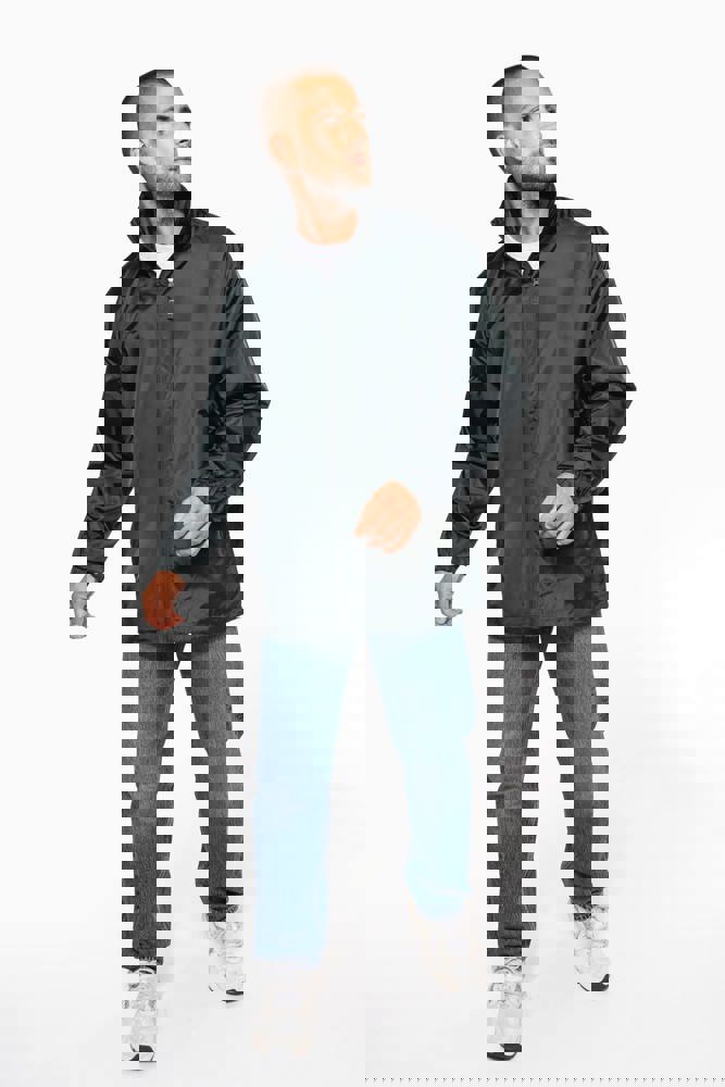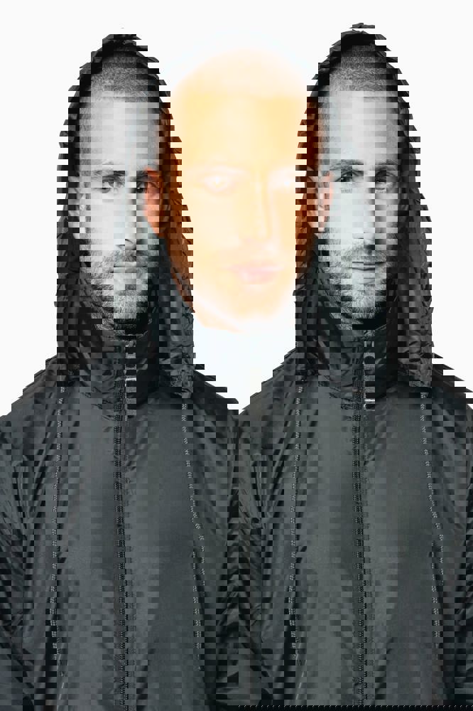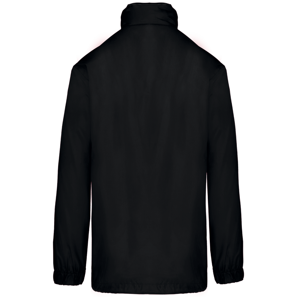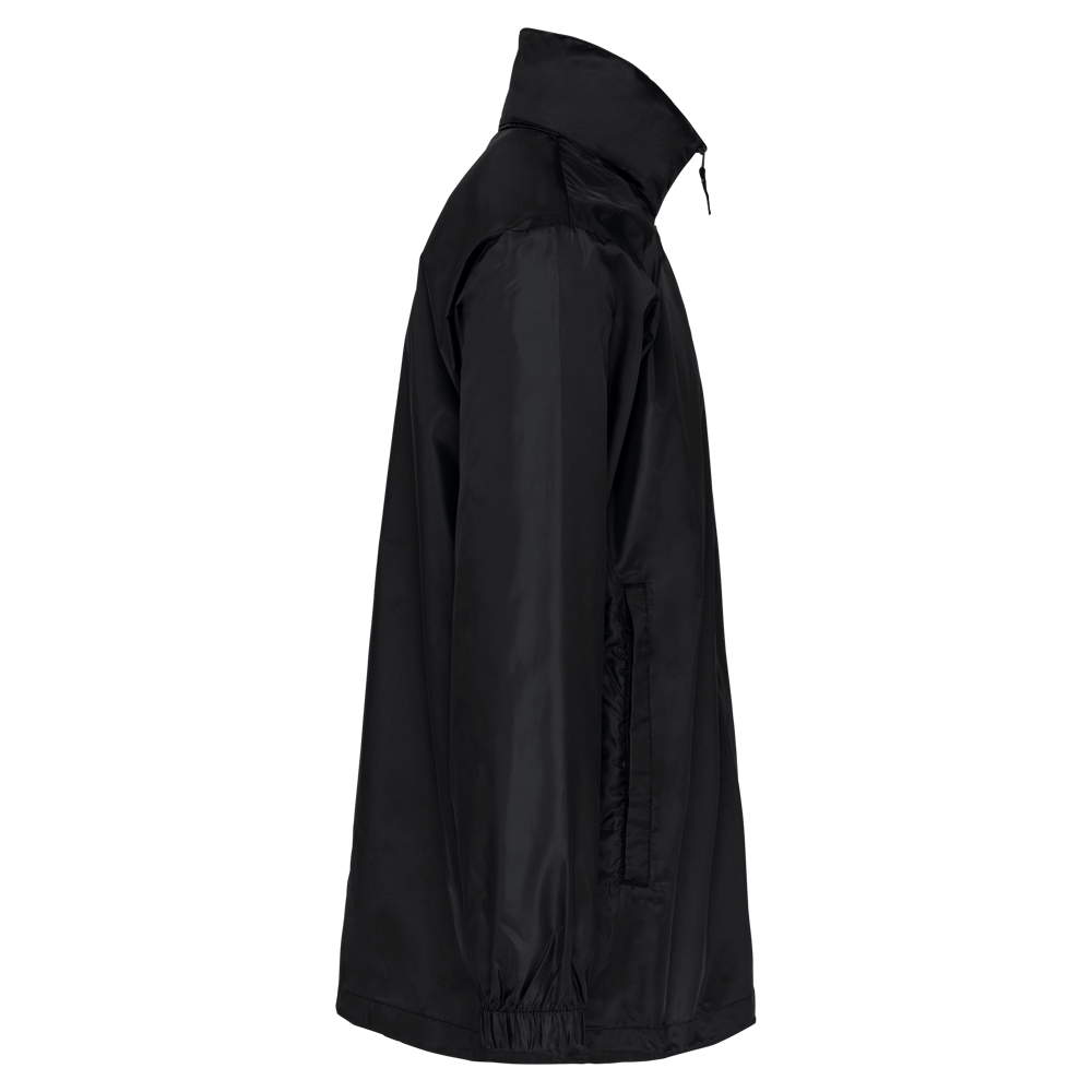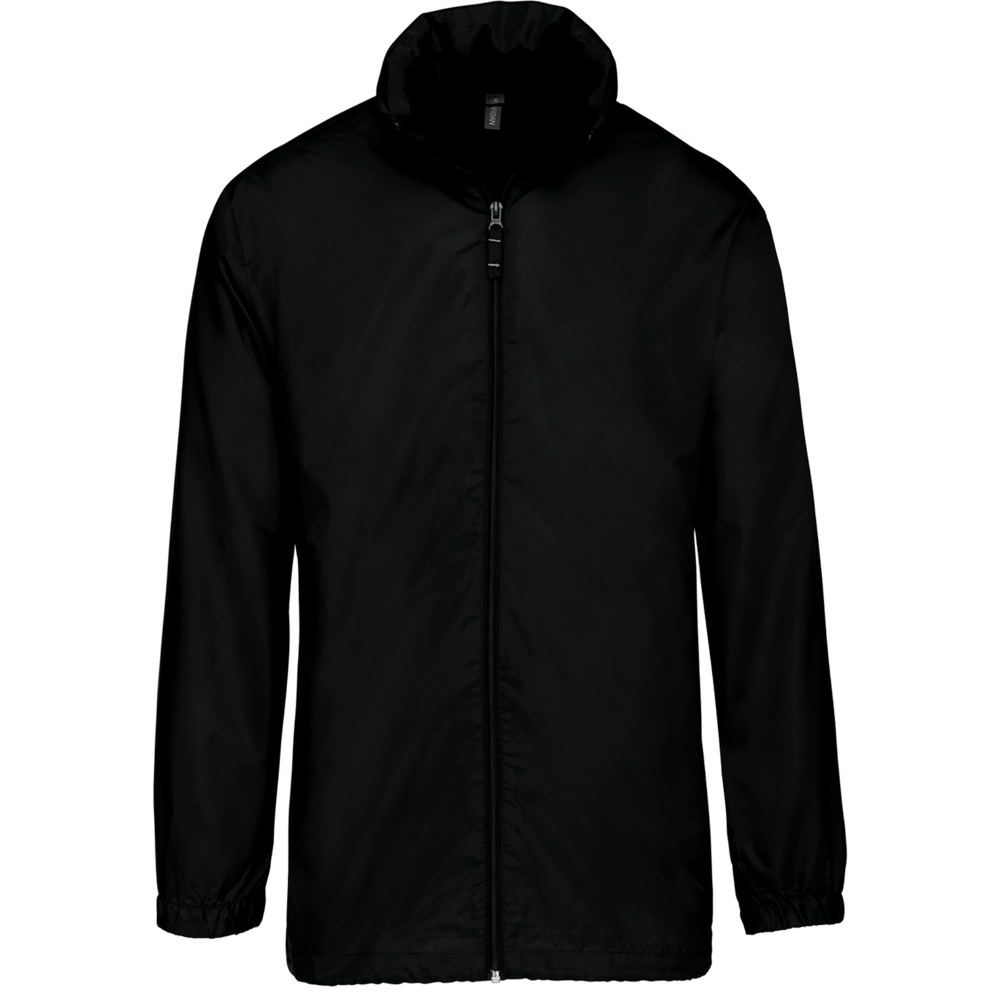 100% Polyester. Im Kragen versteckte Kapuze, mit Klettverschluss. 2 Fronttaschen mit Reißverschluss. Kordelzug am Bund. Gummizug am Ärmelende. Zusammenfaltbar in die Seitentasche (K-WAY® System). Reißverschluss Ton-in-Ton.