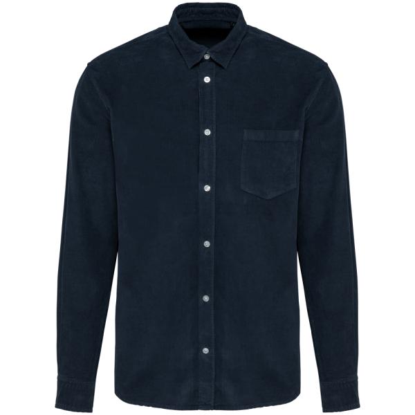 100 % Baumwolle. Stoff aus Kord. Gerader Schnitt. Brusttasche auf der linken Seite mit verstärkten Ecken. Versetzte Knopfleiste mit weißen Knöpfen in Perlmutt-Optik auf allen Farben. Anpassbare, abgerundete Manschetten mit zwei Knöpfen sowie Manschettenschlitz mit Knopf in Perlmutt-Optik. Doppelte Passe am oberen Rücken. Einfache Ziernaht am abgerundeten unteren Saum. Färbung des fertig genähten Kleidungsstücks: leichte Farbabweichungen der Teile möglich. Kein Markenetikett am Halsausschnitt, nur Größenangabe, zur einfacheren Veredelung.