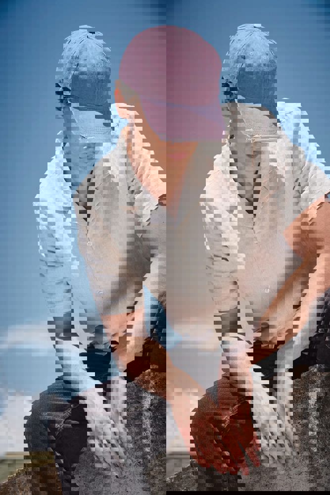 100 % Baumwolle. Zerrissener und verblasster Effekt. 6 Panel. Die Ausschnitte sind so positioniert, dass sie leicht angepasst werden können.