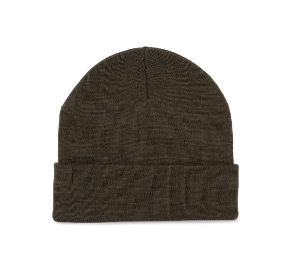 50 % Polyester, 50 % Acryl. Strickmütze mit Umschlag aus Acryl und recyceltem Polyester. Markenetikett zum Abreißen.