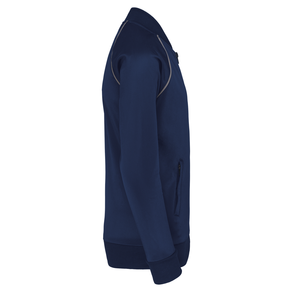 100 % Polyester-Strick. Gerader Schnitt. Ton-auf-Ton Nylon-Reißverschluss. Raglanärmel mit kontrastfarbener Paspel. 1x1-Strickbündchen an Kragen, Ärmeln und Saum. 2 Reißverschluss-Seitentaschen. Herausreißbares Markenetikett zur leichteren Veredelung.
