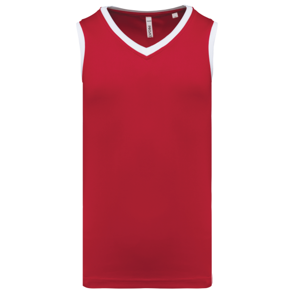 100% Birdseye-Polyester. V-Ausschnitt. Kontrast-Paspelierung an Kragen und Armlöchern. Doppelnähte am unteren Saum. Abnehmbares Markenetikett.
