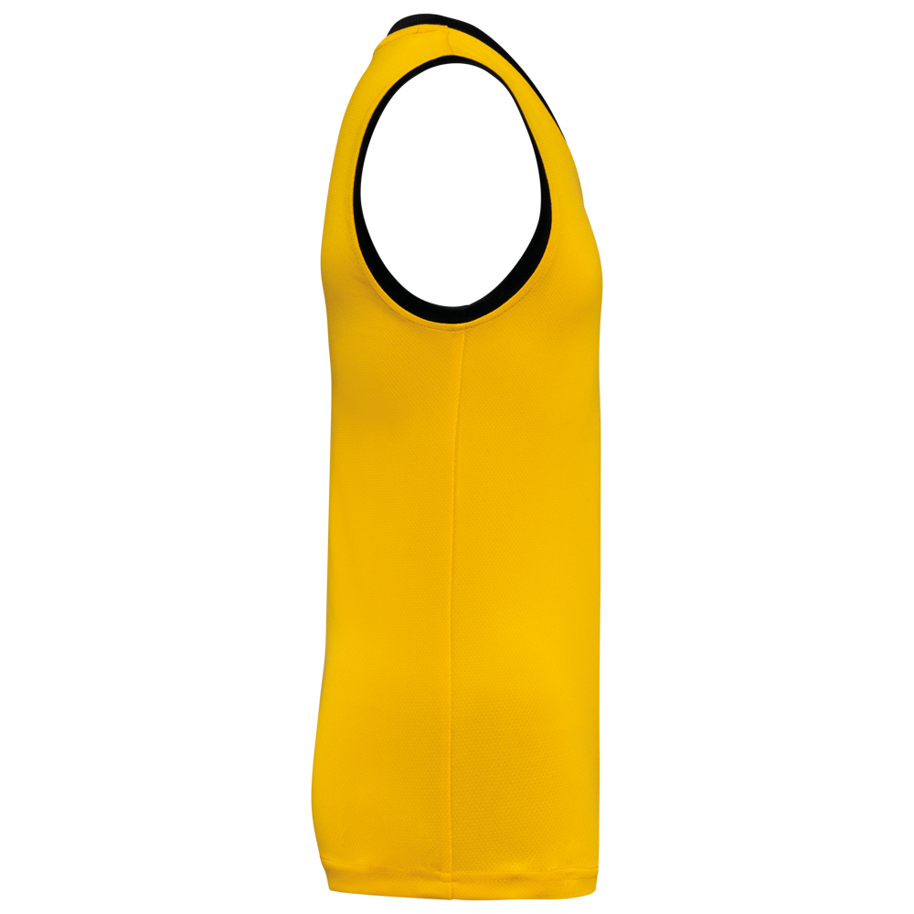 100% Birdseye-Polyester. V-Ausschnitt. Kontrast-Paspelierung an Kragen und Armlöchern. Doppelnähte am unteren Saum. Abnehmbares Markenetikett.