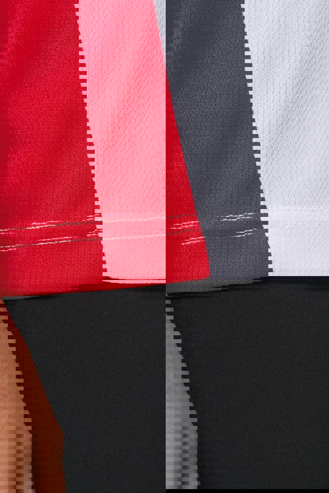 100 % recyceltes Post-Consumer Birdseye-Polyester. Leichtes, schnell trocknendes Gewebe. Gerader Schnitt. Rundhalsausschnitt mit Nackenband. Eingesetzte Ärmel. Ausschnitte an Schultern, Ärmeln und Rücken. Abgeschrägte, kontrastierende Vorderseite. Doppelnähte an Ärmelbündchen und Saum. Abnehmbares Markenetikett.