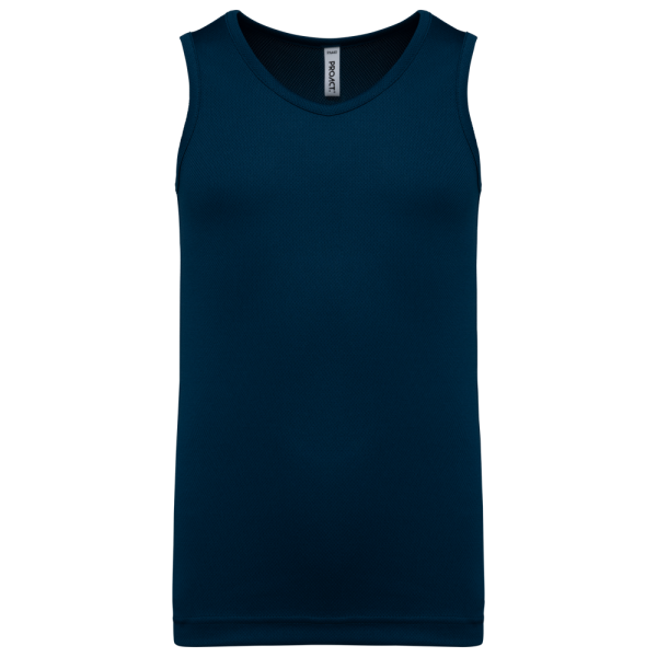 100% Birdseye-Polyester. Leichtes, schnell trocknendes Gewebe. Schräge am Halsausschnitt und an den Armausschnitten. Doppelnähte am Saum. Abnehmbares Markenetikett.