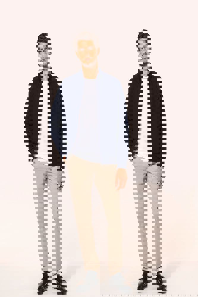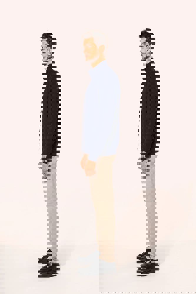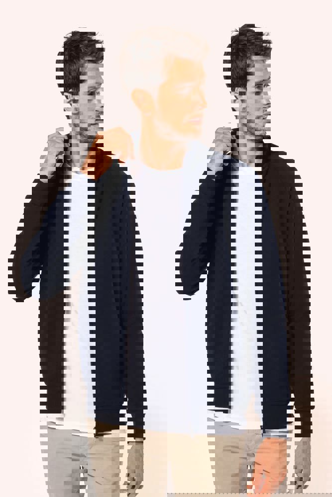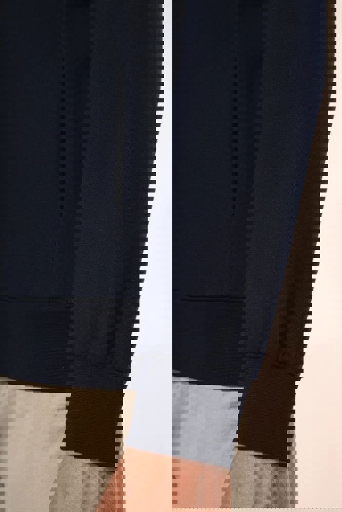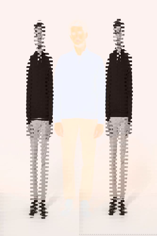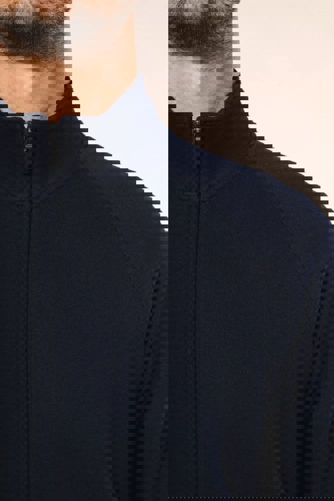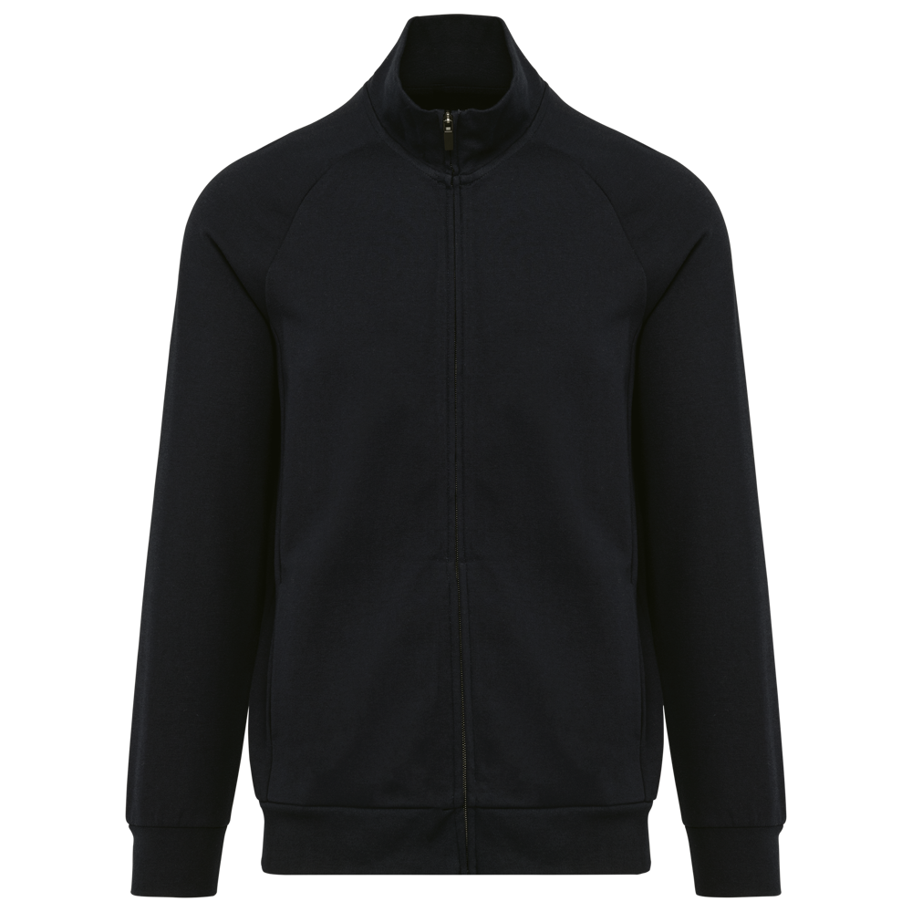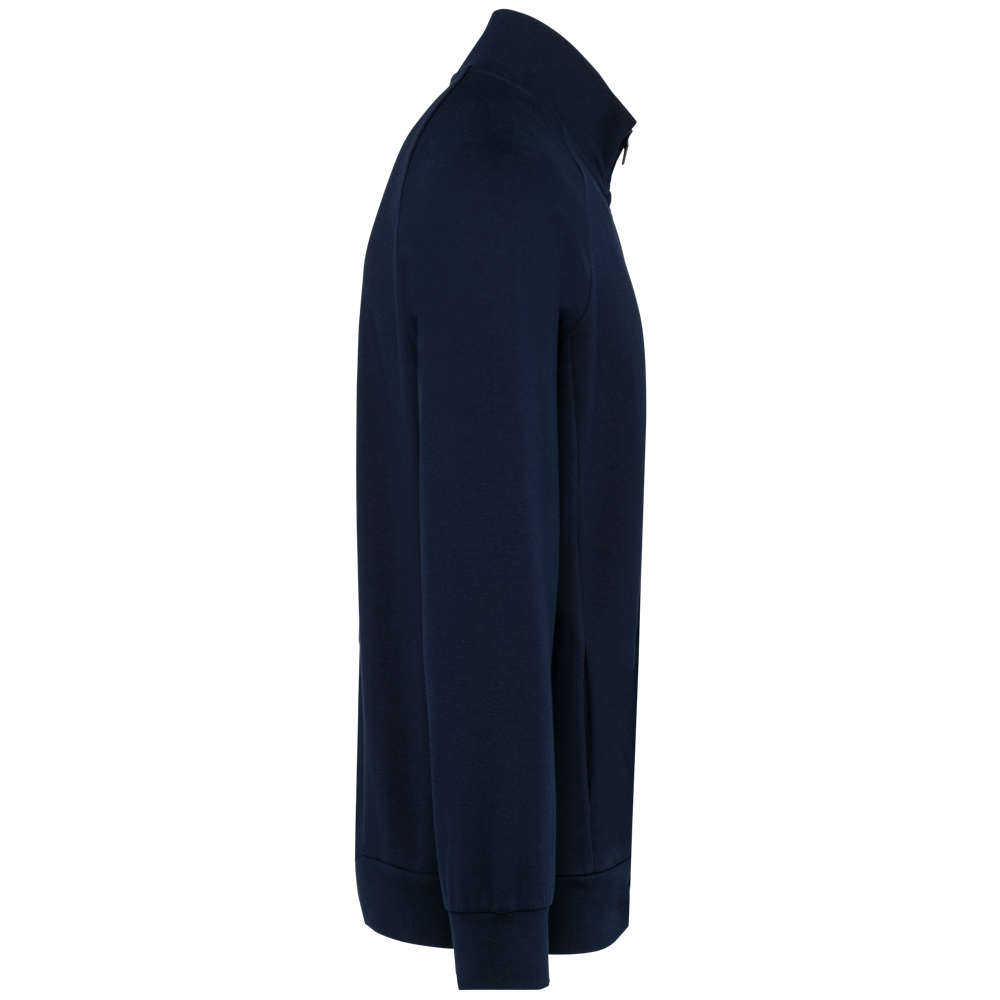 70 % Baumwolle / 26 % Polyester / 4 % Elasthan. Gekämmte Baumwolle. Interlock-Stoff. LSI-Behandlung (Low Shrinkage Interlock). Ziernähte am Kragen. Nackenband auf der Innenseite des Halsausschnitts. Farblich abgestimmter Nylon-Reißverschluss mit Metall und Nackenband auf der Innenseite. Raglanärmel. 1x1 Rippstrick. 2 Taschen in der Einsatznaht. Kein Markenetikett, nur Größenkennzeichnung für eine leichtere Veredelung.