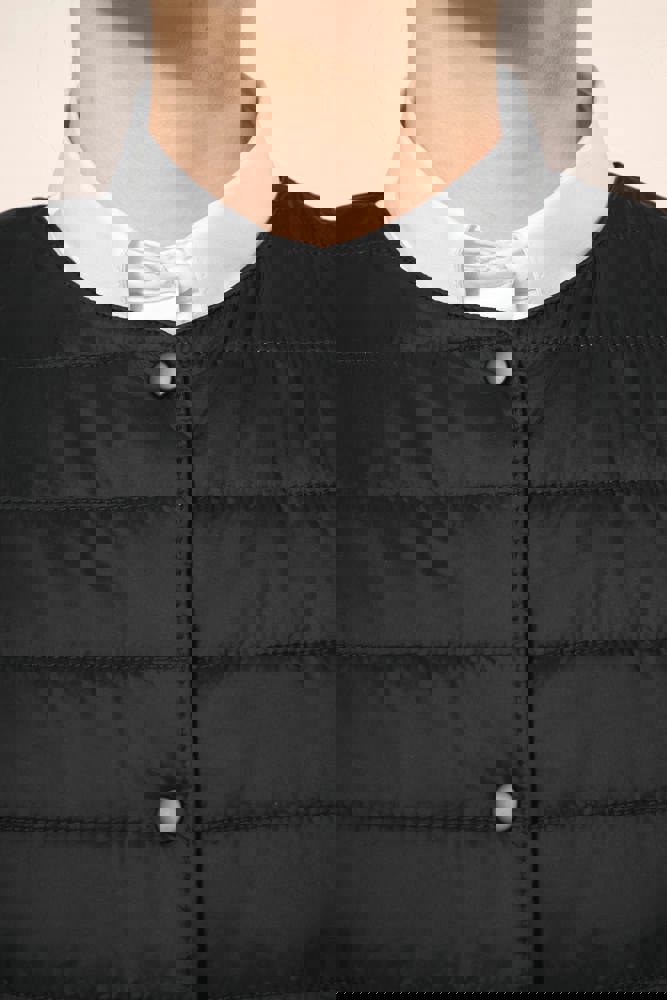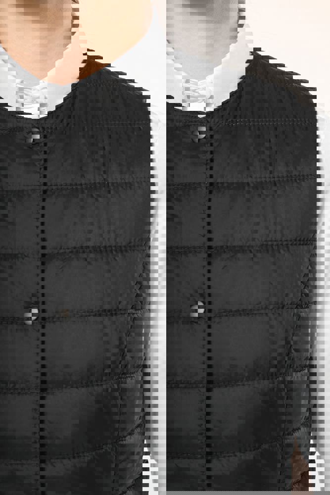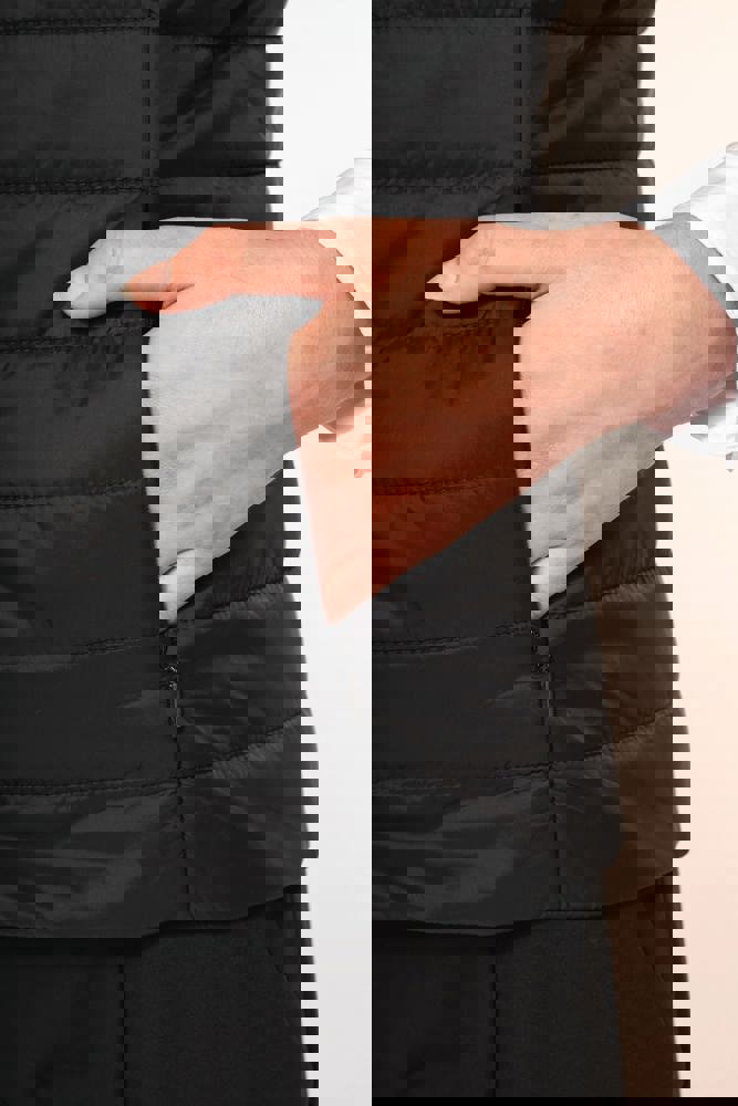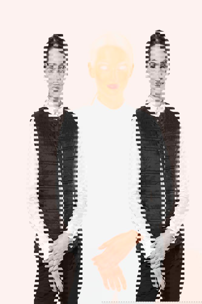 100 % Polyamid. Gerader Schnitt. Thinsulate™-Futter. Ausschnitt mit 2 Seitentaschen und verdecktem Reißverschluss. Farblich abgestimmter Druckknopfverschluss. Reißverschluss zur Veredelung der Innenseite links. Leichte Weste ohne Ärmel, damit sie unter einer Jacke getragen werden kann. Kein Markenetikett, nur Größenangabe, zur einfacheren Veredelung.