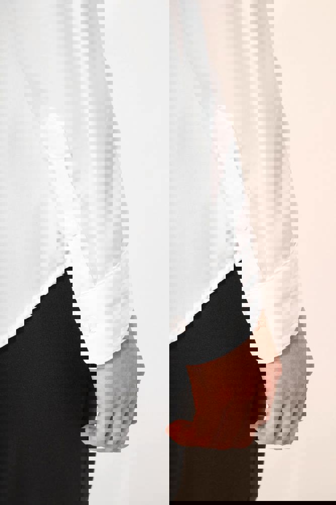 100 % Baumwolle. Twill-Stoff. Pflegeleicht (Easy Care Behandlung). Hochwertiger 80 x 2 Doppelzwirn. Passe am oberen Rücken. Verdeckte Knopfleiste. Perlmuttknöpfe. Handgelenk mit 2 abgerundeten Knöpfen. Kein Markenetikett, nur Größenkennzeichnung, für eine leichtere Veredelung.