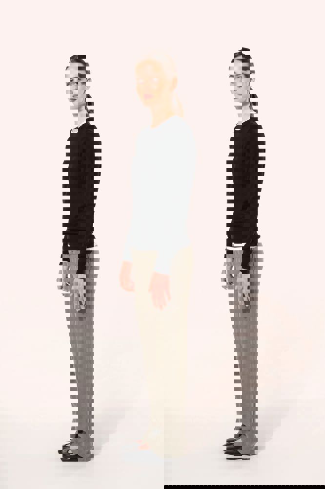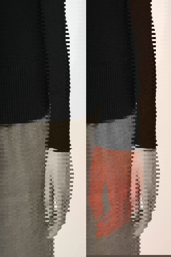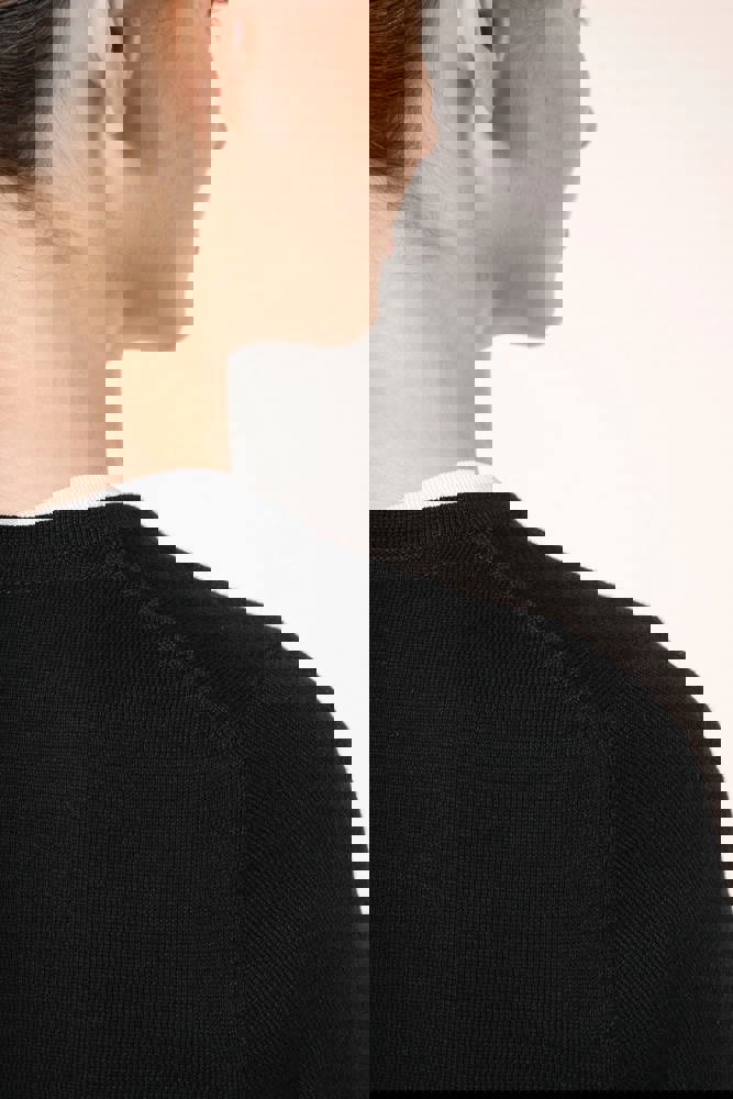 100 % Supima®-Baumwolle. Gekämmte Baumwolle. 12 gg Strick. Hochwertiges Material. Fully-fashioned: In der Form gestrickt und mit einer Mesh-Maschine zusammengesetzt. 1 x 1 Rippstrick an Halsausschnitt, Ärmelbündchen und Saum.
