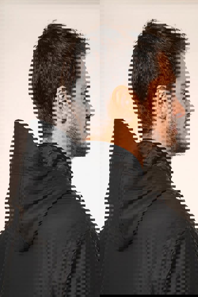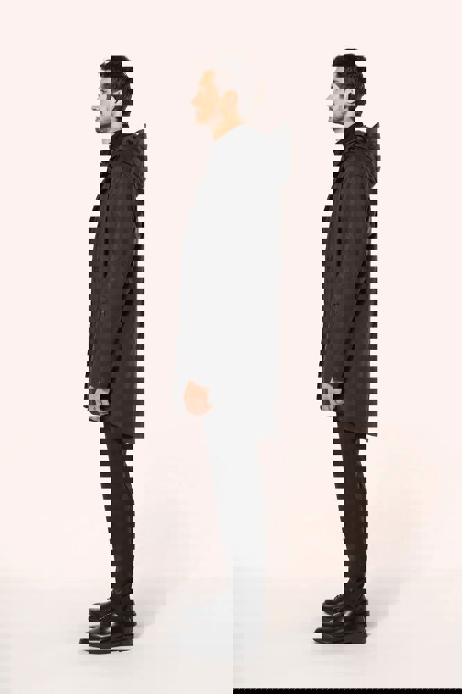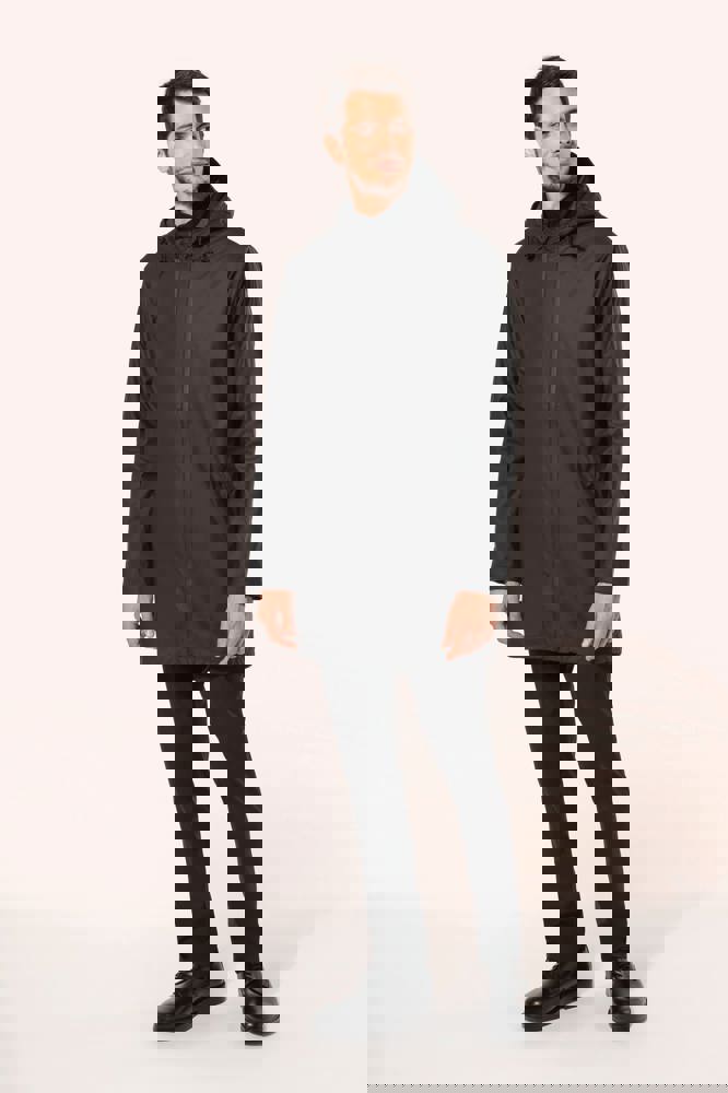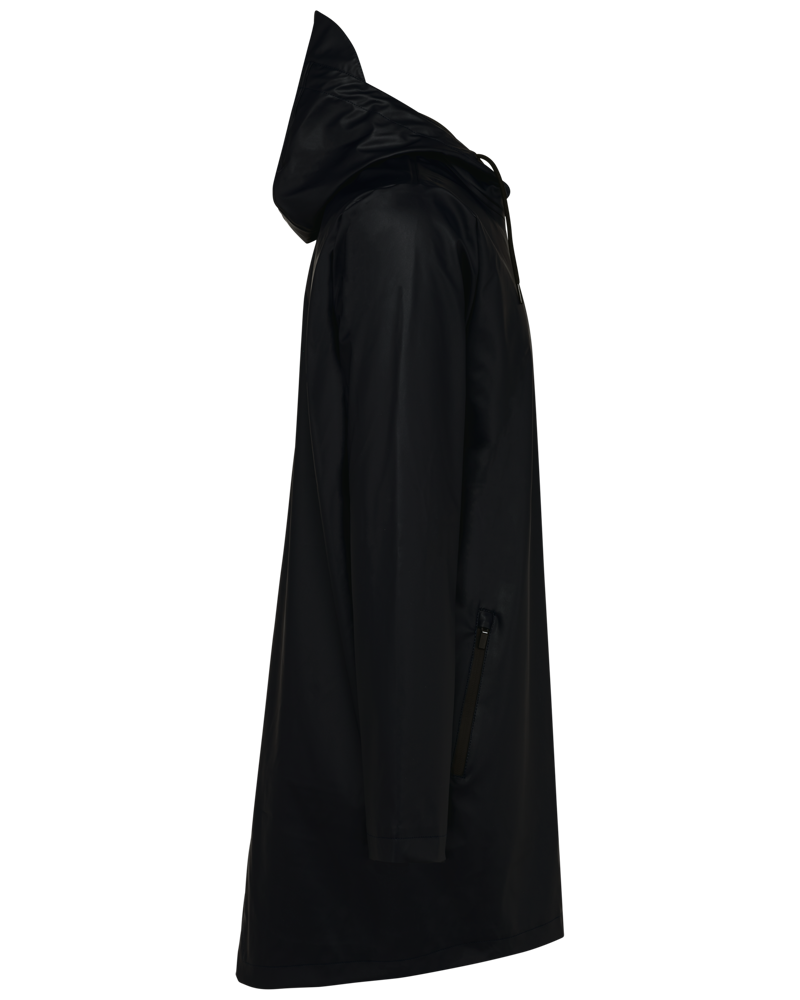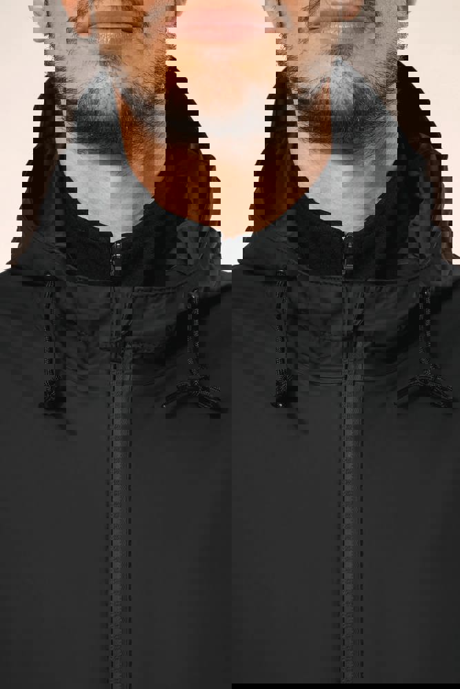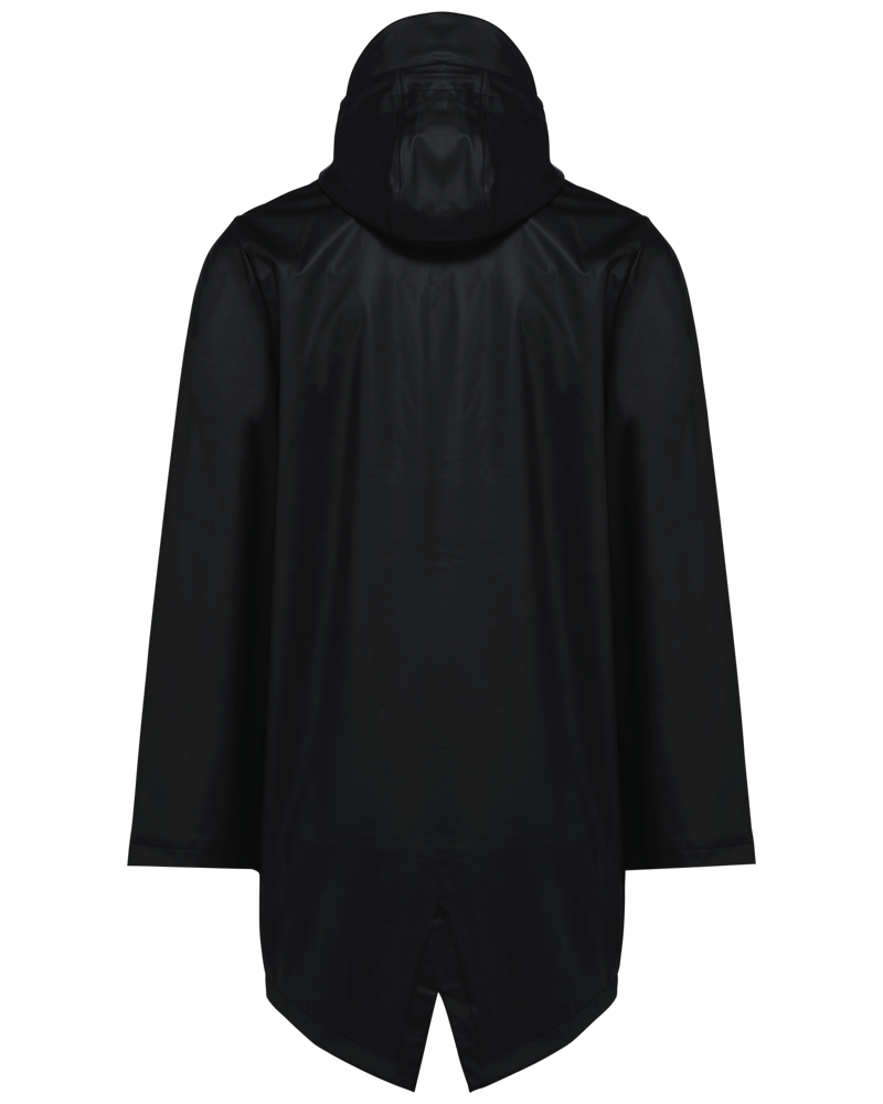 100 % Polyurethan-Beschichtung auf der Außensite und 100 % Polyester auf der Innenseite. Wärmeverschweißte Nähte. Vollständig wasserdicht bei 5.000 mm. Futter aus 100 % Polyester. Kapuze mit Schutzvisier und Kordelzug, Stopper mit Metallkappe. Reißverschluss mit wasserdichter Abdeckung, der bis zur Kapuze reicht, mit Zipper-Abdeckung oben. 2 Seitentaschen mit vollständig wasserdichtem Reißverschluss und Zipper-Abdeckung. Belüftungsösen unter der Achsel. Längeres Rückenteil mit Dehnfalte am Saum. Schlaufe auf der Innenseite des Halsausschnitts zum Aufhängen der Jacke. Patch zur Veredelung auf der Innenseite oben am Rücken. Reißverschluss zur Veredelung innen, hinten am Saum und auf der Brusttasche. Kein Markenetikett, nur Größenkennzeichnung um die Veredelung zur erleichtern.