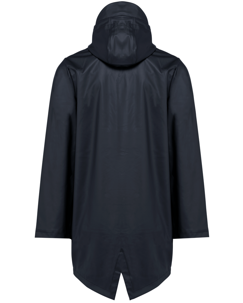 100 % Polyurethan-Beschichtung auf der Außensite und 100 % Polyester auf der Innenseite. Wärmeverschweißte Nähte. Vollständig wasserdicht bei 5.000 mm. Futter aus 100 % Polyester. Kapuze mit Schutzvisier und Kordelzug, Stopper mit Metallkappe. Reißverschluss mit wasserdichter Abdeckung, der bis zur Kapuze reicht, mit Zipper-Abdeckung oben. 2 Seitentaschen mit vollständig wasserdichtem Reißverschluss und Zipper-Abdeckung. Belüftungsösen unter der Achsel. Längeres Rückenteil mit Dehnfalte am Saum. Schlaufe auf der Innenseite des Halsausschnitts zum Aufhängen der Jacke. Patch zur Veredelung auf der Innenseite oben am Rücken. Reißverschluss zur Veredelung innen, hinten am Saum und auf der Brusttasche. Kein Markenetikett, nur Größenkennzeichnung um die Veredelung zur erleichtern.