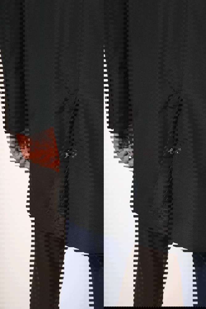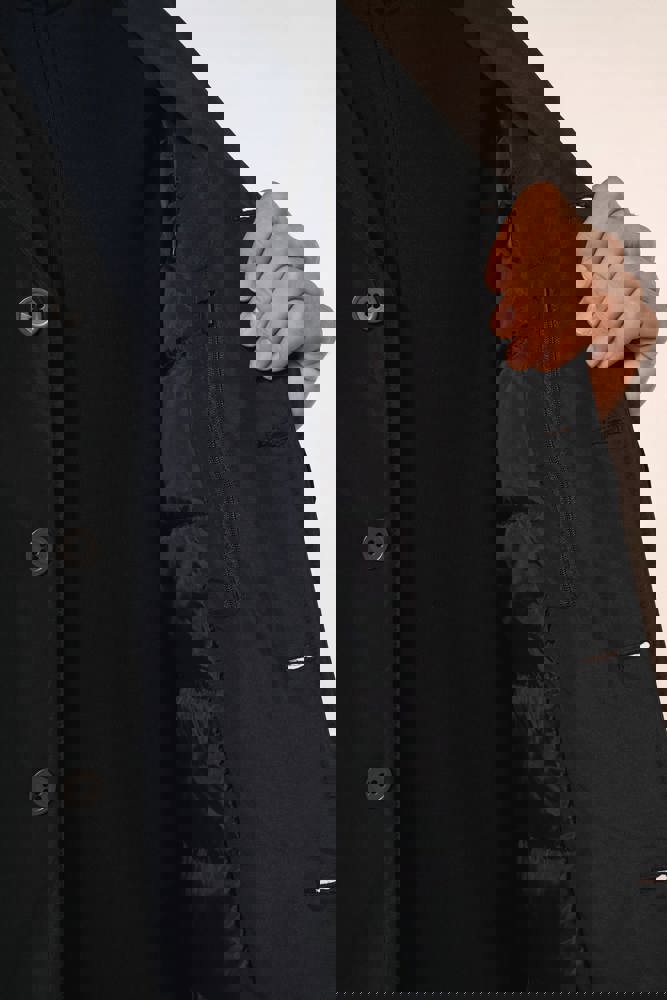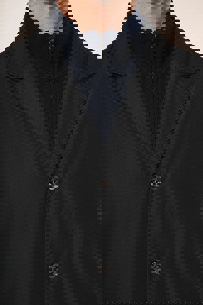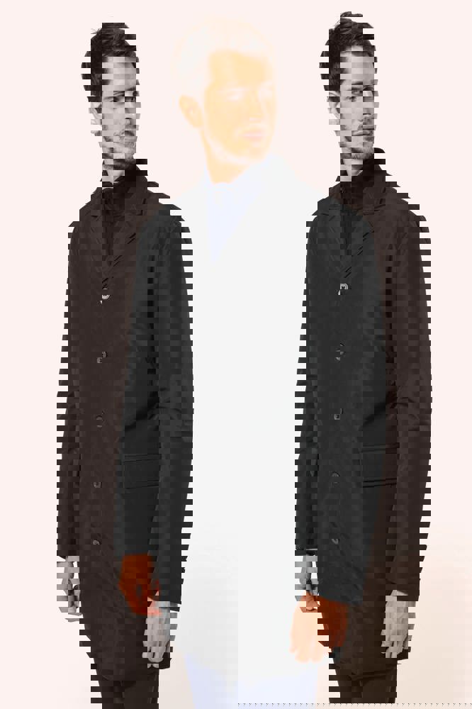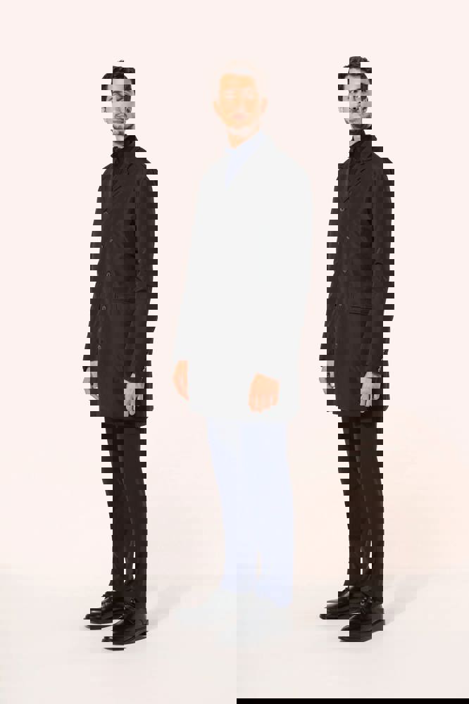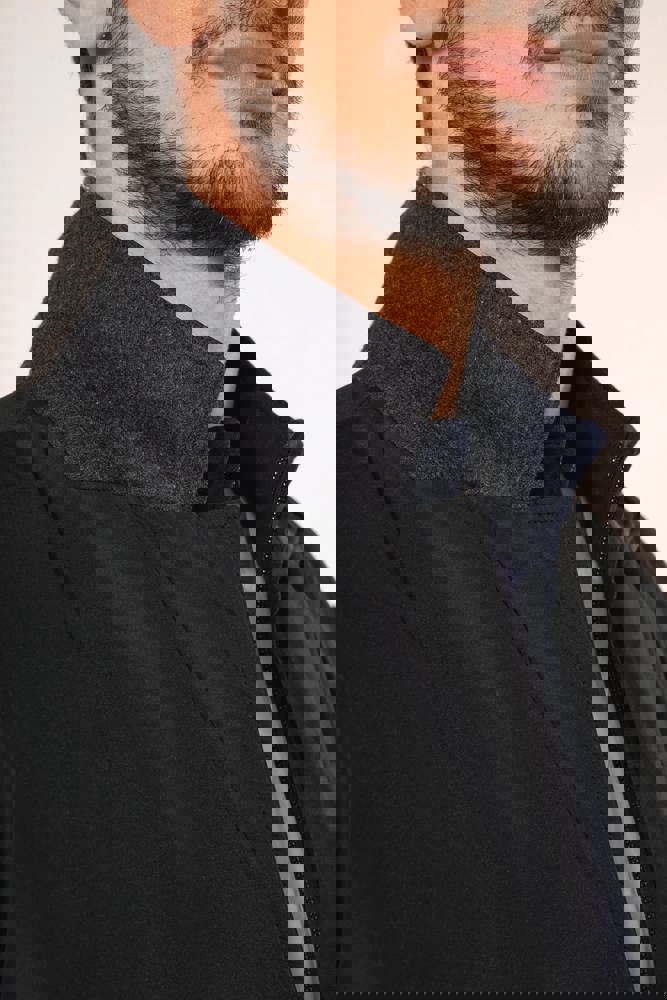 100 % Polyester. 3 verklebte Lagen. Vollständig wasserdichter Stoff 8.000 mm. Thinsulate®-Futter. Windjacke mit Kostümkragen und Kragen mit kontrastfarbenem Filz auf der Innenseite. Metallknöpfe auf der Vorderseite. Metallknöpfe an den Ärmelbündchen. 2 Fronttaschen mit Klappe und 1 Paspeltasche rechts. Brusttasche mit Reißverschluss. Schlitz unten am Rücken mit Druckknopf. Schlaufe am Halsausschnitt zum Aufhängen des Trenchcoats. Reißverschluss zur Veredelung innen, hinten am Saum und auf der Brusttasche. Patch zur Veredelung oben am Rücken. Kein Markenetikett, nur Größenkennzeichnung für eine leichtere Veredelung.