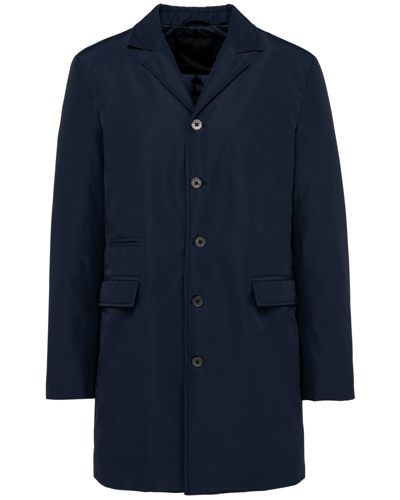 100 % Polyester. 3 verklebte Lagen. Vollständig wasserdichter Stoff 8.000 mm. Thinsulate®-Futter. Windjacke mit Kostümkragen und Kragen mit kontrastfarbenem Filz auf der Innenseite. Metallknöpfe auf der Vorderseite. Metallknöpfe an den Ärmelbündchen. 2 Fronttaschen mit Klappe und 1 Paspeltasche rechts. Brusttasche mit Reißverschluss. Schlitz unten am Rücken mit Druckknopf. Schlaufe am Halsausschnitt zum Aufhängen des Trenchcoats. Reißverschluss zur Veredelung innen, hinten am Saum und auf der Brusttasche. Patch zur Veredelung oben am Rücken. Kein Markenetikett, nur Größenkennzeichnung für eine leichtere Veredelung.