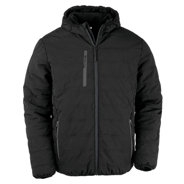 Stoff – Außenseite: 100 % recycelter TOPGREEN-Polyester. Isolierung: 160 g/m² – 100 % recycelter REPREVE®-Polyester. Rumpf aus Steppmaterial mit Fleecefutter. YKK-Reißverschluss mit Kinnschutz. Kontrastfarbene Reißverschlusstaschen. Kapuze mit Fleecefutter. Ärmelbündchen mit eingefassten Säumen. TPU-Membran als Schutz bei schlechtem Wetter.