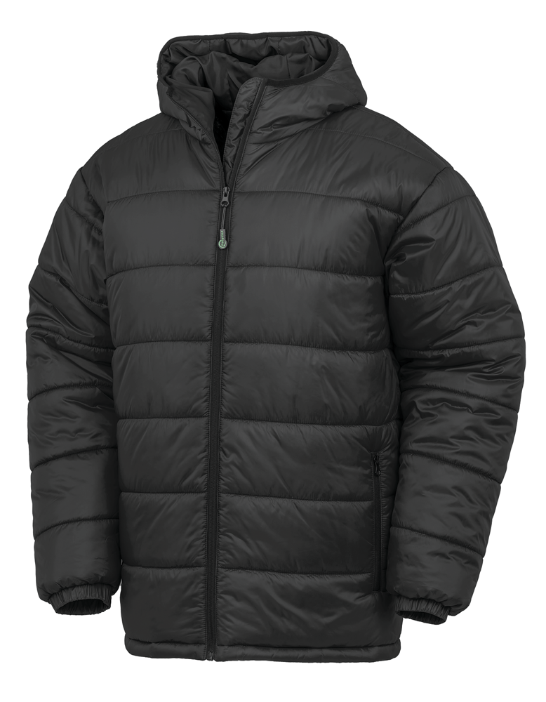 Außenseite: 100 % recyceltes Nylon. Polsterung: 220 g/m2 100 % recycelter Polyester. Futter: 100 % recycelter Polyester. Gefütterte und elastische Kapuze. Reißverschluss vorn. Gestepptes Polyester mit weichem Griff. Elastische Ärmelbündchen. Reißverschlusstaschen. Interne Schutzklappe. Längerer Schnitt. Innentasche. Gerader Saum. Aufhängerleiste. Recycelter Stoff, der aus Plastikflaschen und Industrieabfällen hergestellt wird. Am Ende der Lebensdauer recycelbar.
