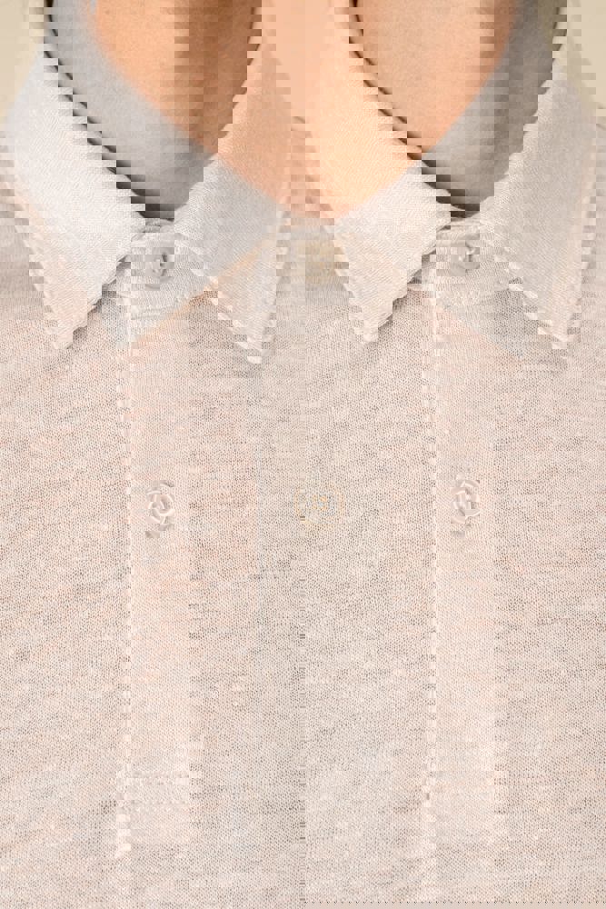 100% Leinen. Strick. Gerader Schnitt. Kragen mit Kragensteg aus Hauptmaterial. Knopfleiste mit zwei farblich abgestimmten Knöpfen aus recyceltem Kunststoff und mit Ziernaht. Farblich abgestimmte Knöpfe aus recyceltem Kunststoff. Doppel-Ziernaht an Ärmelbündchen und unterem Saum.