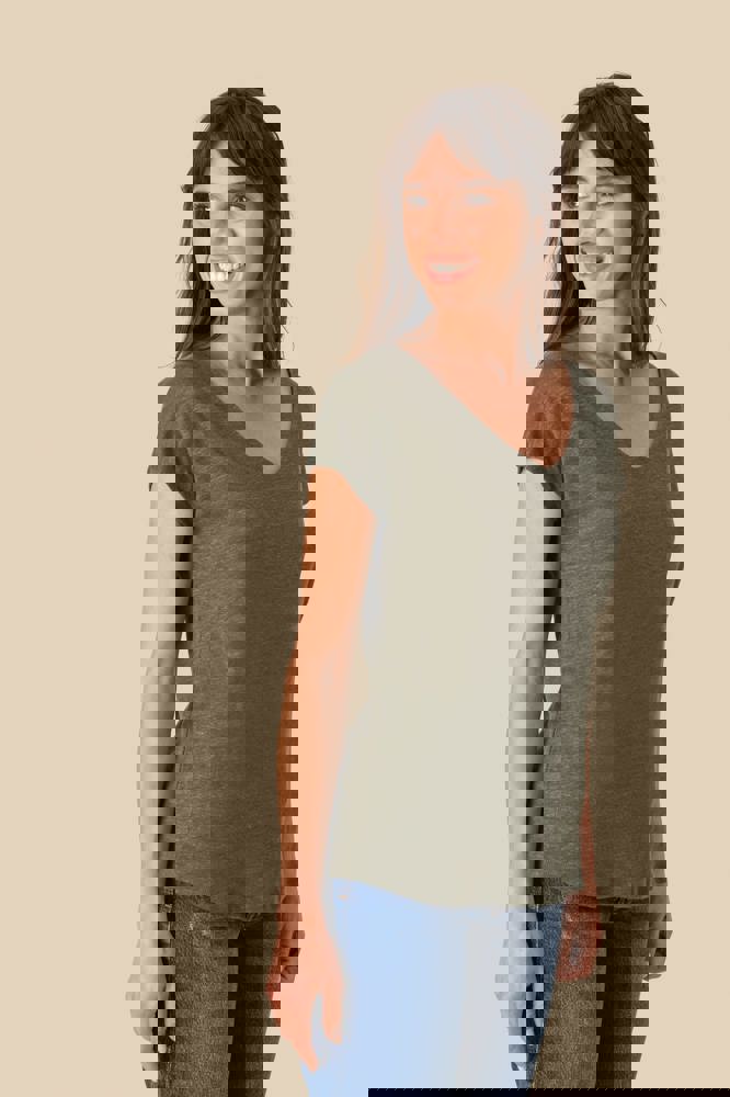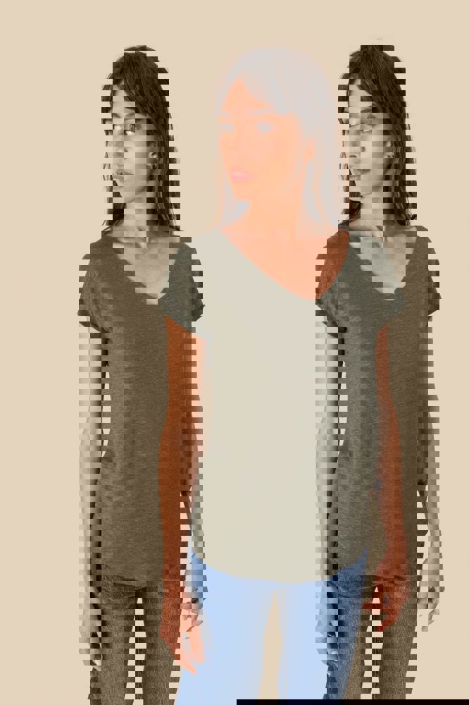 SP321 - Damen-T-Shirt aus Leinen mit V-Ausschnitt