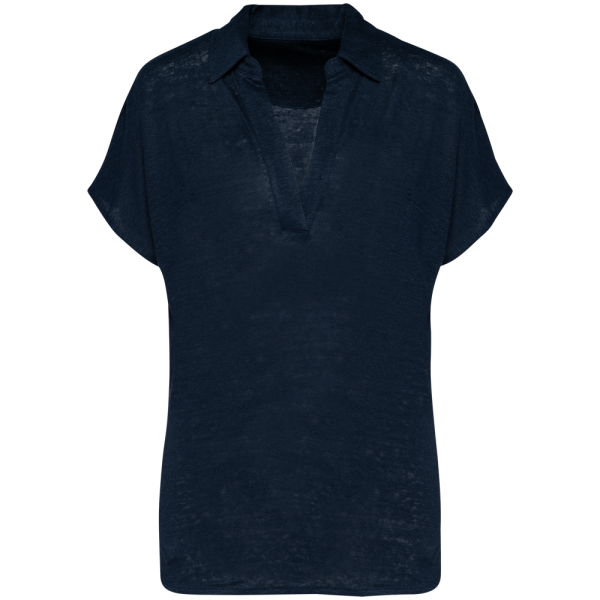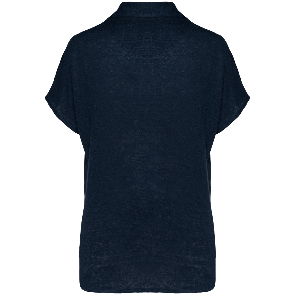 100 % Leinen. Strick. Reguläre Passform mit tief angesetzten Ärmeln. Seitliche Schlitze mit Einsatz zur Verstärkung. Kragen mit Kragensteg und stoffgleichem knopflosem Polohemd V-Ausschnitt. Doppel-Ziernaht an Ärmelbündchen und Saum. Halbmondpasse am Rücken.