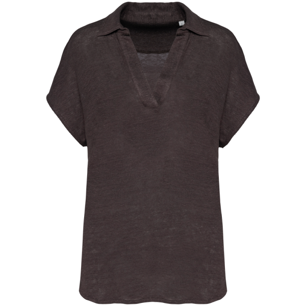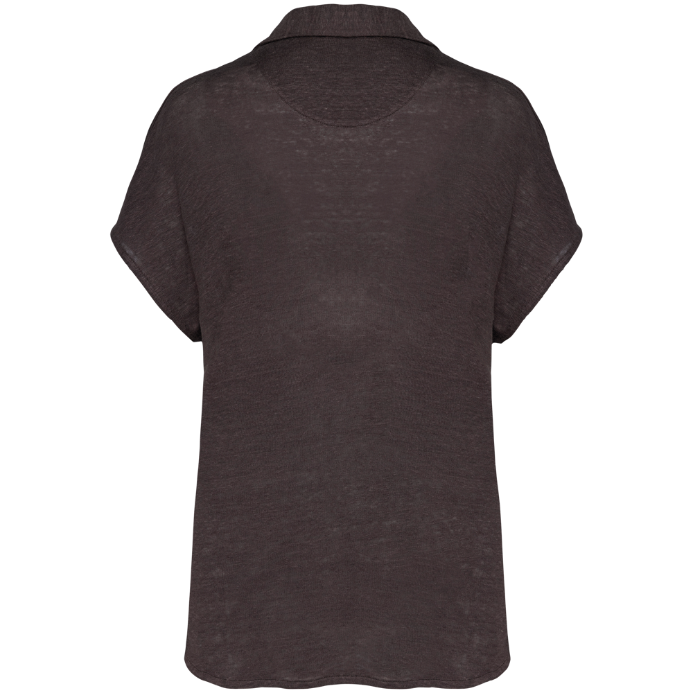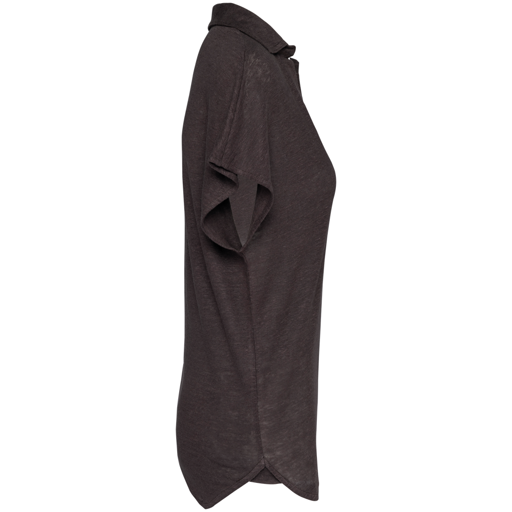 100 % Leinen. Strick. Reguläre Passform mit tief angesetzten Ärmeln. Seitliche Schlitze mit Einsatz zur Verstärkung. Kragen mit Kragensteg und stoffgleichem knopflosem Polohemd V-Ausschnitt. Doppel-Ziernaht an Ärmelbündchen und Saum. Halbmondpasse am Rücken.