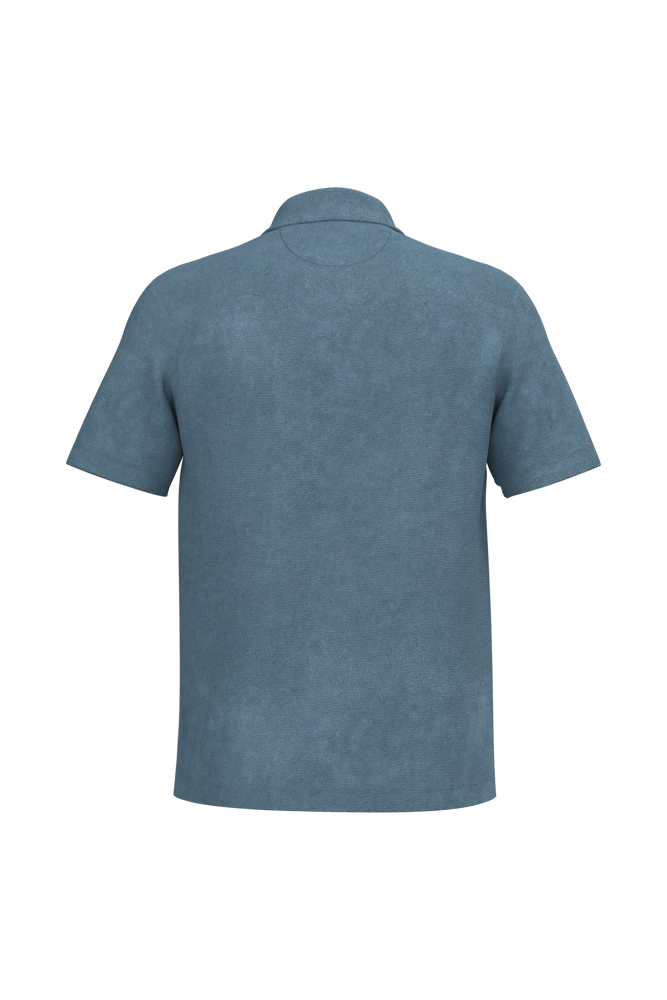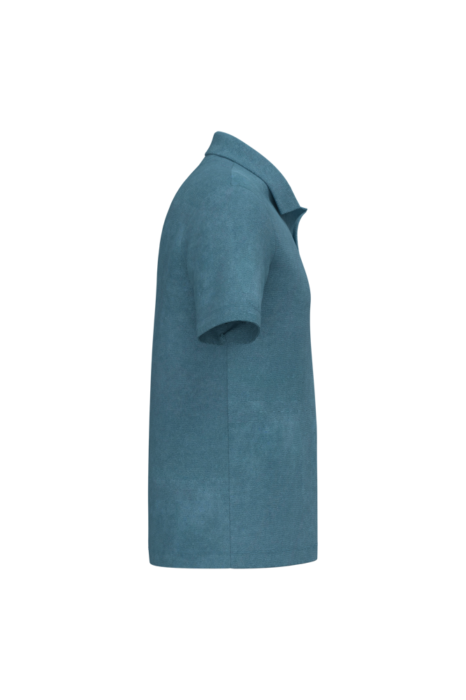 80 % biologische Baumwolle / 20 % recycelter Post-Consumer-Polyester. Hergestellt in Portugal. Gekämmte Baumwolle. Frotteematerial. Gerader Schnitt. Enzymwäsche. Polokragen und V-Ausschnitt aus Hauptmaterial, ohne Knopf. Schulterverstärkung. Doppel-Ziernaht an Ärmelbündchen und unterem Saum. Halbmond am Rücken.